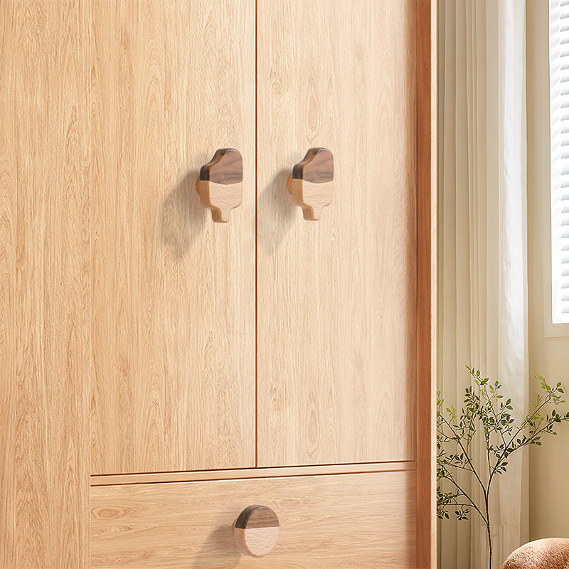 📚 儿童房衣柜拉手实木橱柜抽屉实木创意原木色星星月亮柜门把手女孩