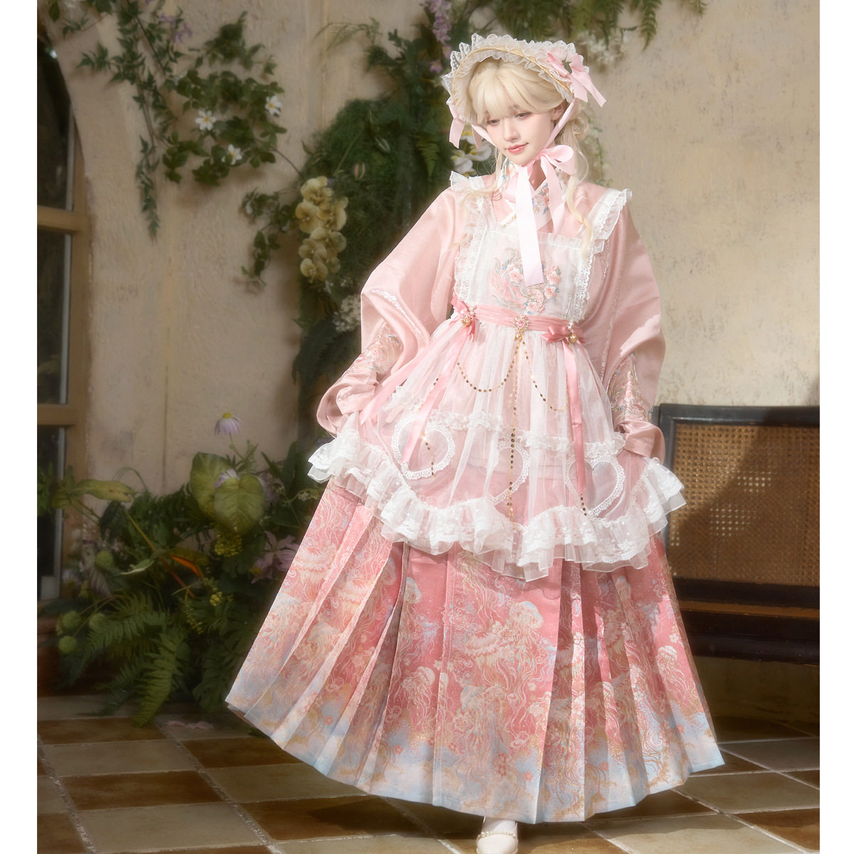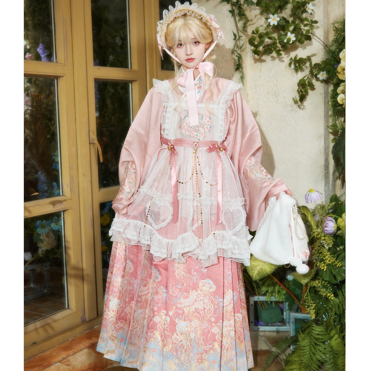 📚 洛竹原创冬季汉洋折衷汉服套装上衣女罩裙明制粉色马面裙2025新款