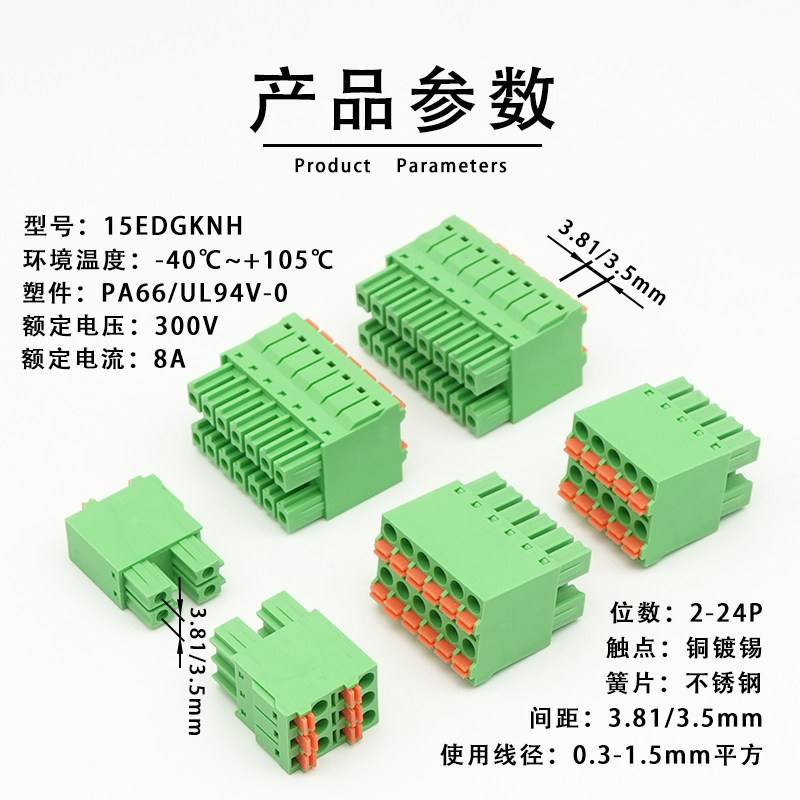 📚 15EDGKNH-3.81mm3.5薄款双排弹簧插拔式PCB凤凰接线端子15EDGKNHC