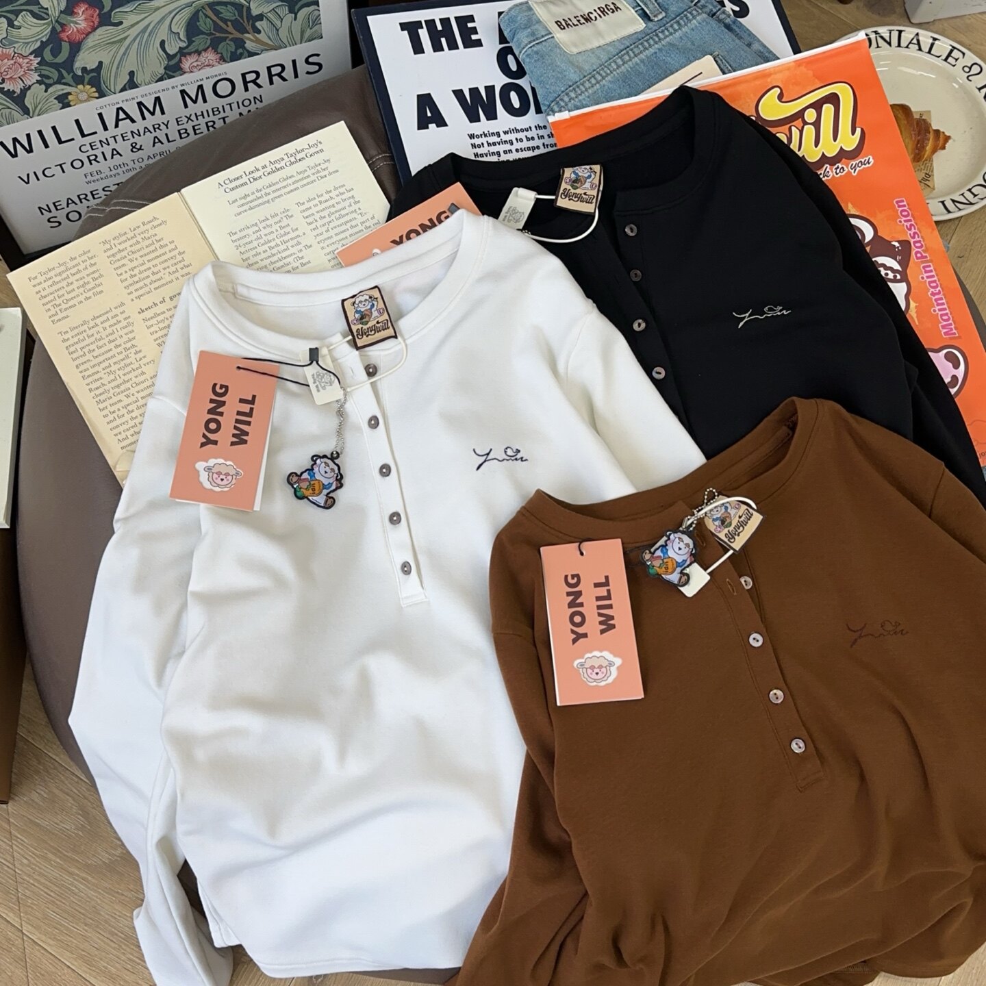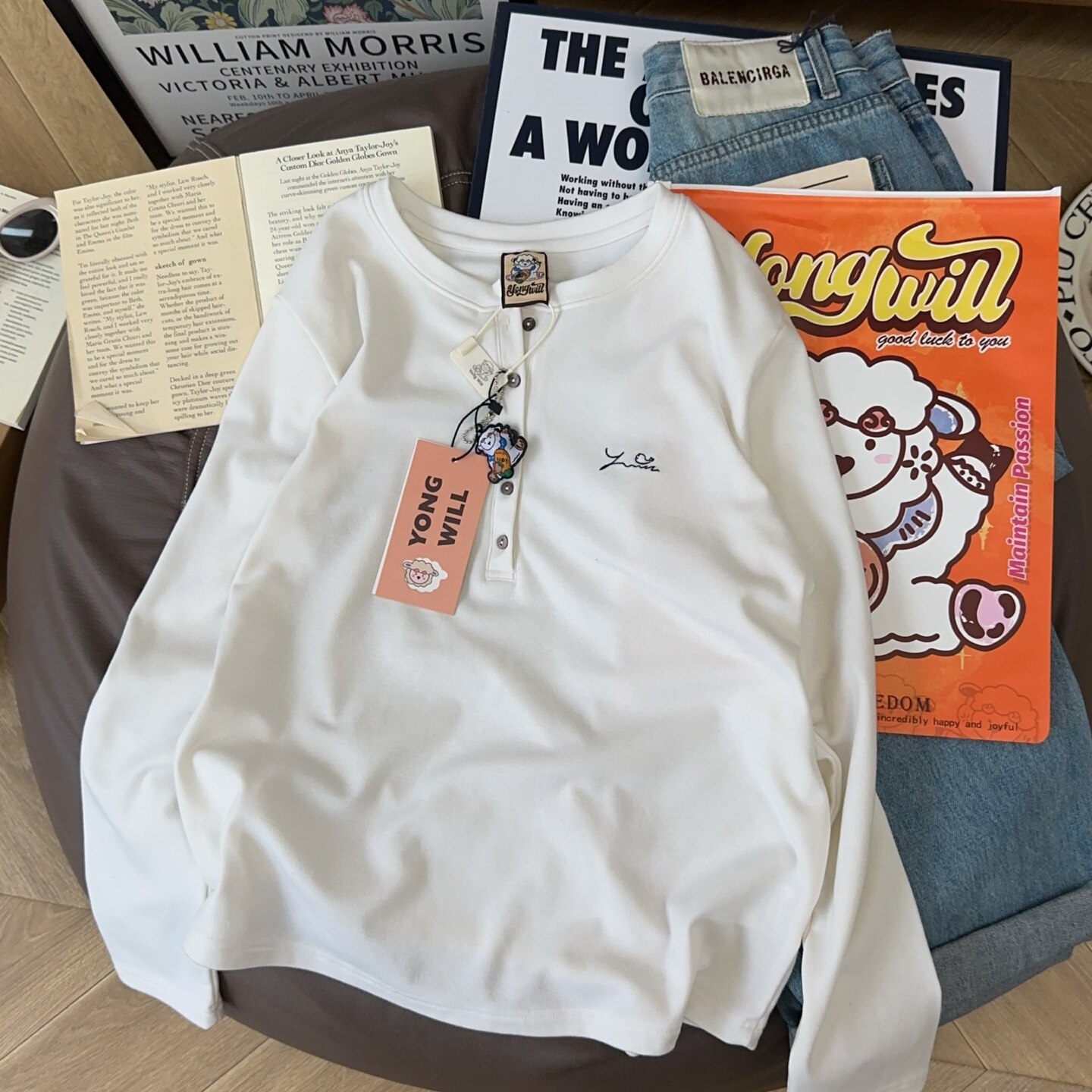 📚 打底刚需!Yongwill小羊纸袋家280g纯棉加绒长袖打底T恤女内搭冬