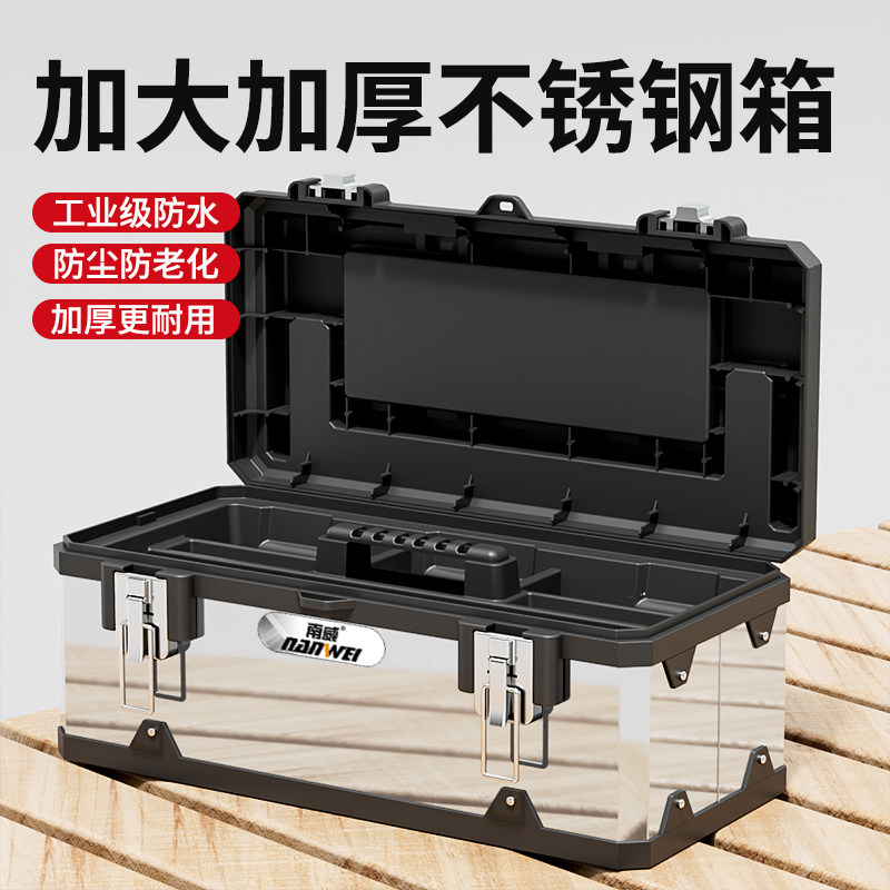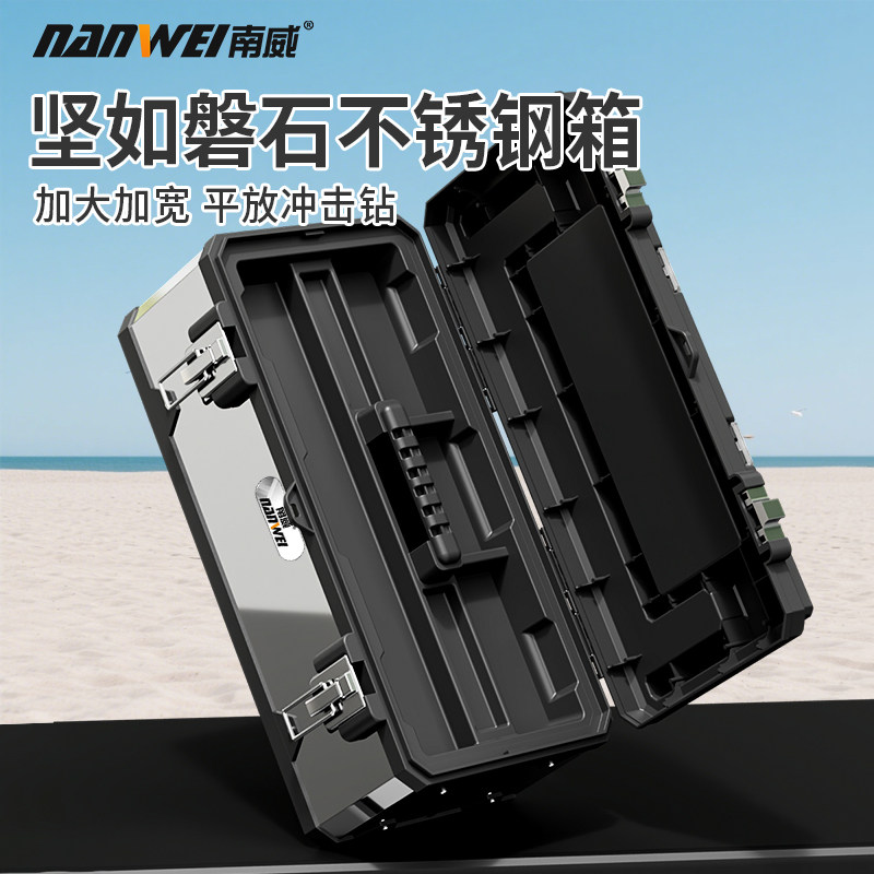 📚 南威不锈钢加厚工具箱家用五金工具收纳箱户外车载多功能收纳盒