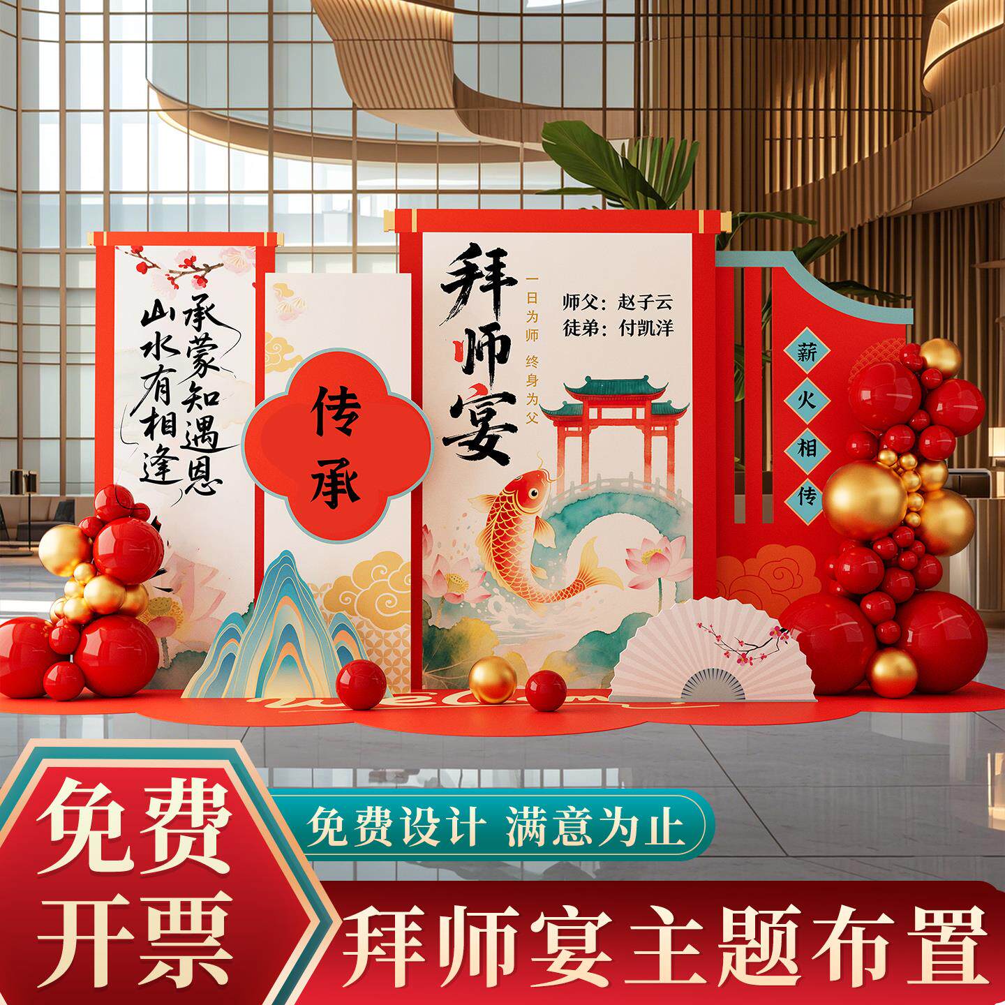 📚 拜师宴主题场景布置拜师传承仪式感酒店气球装饰美陈kt展板背景墙