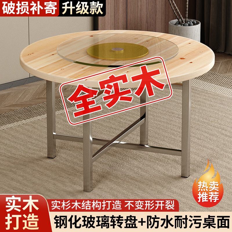 📚 全实木圆桌面加厚大圆桌面饭店家用杉木实木餐桌圆形折叠桌腿酒店