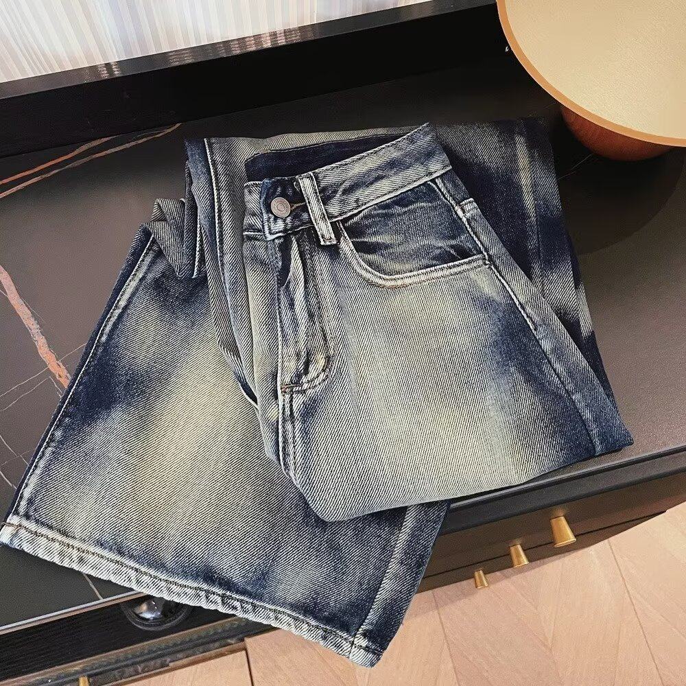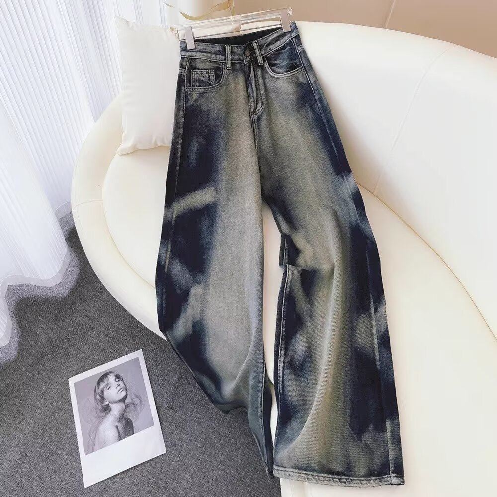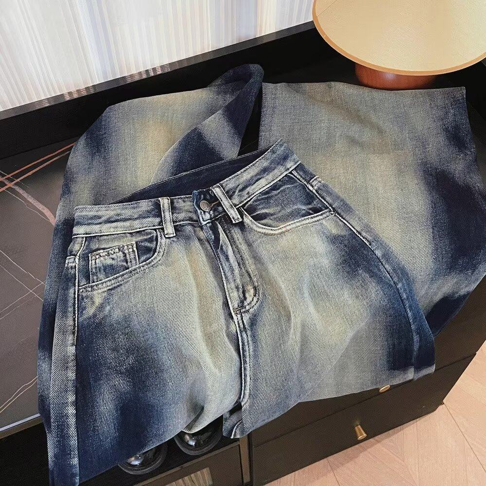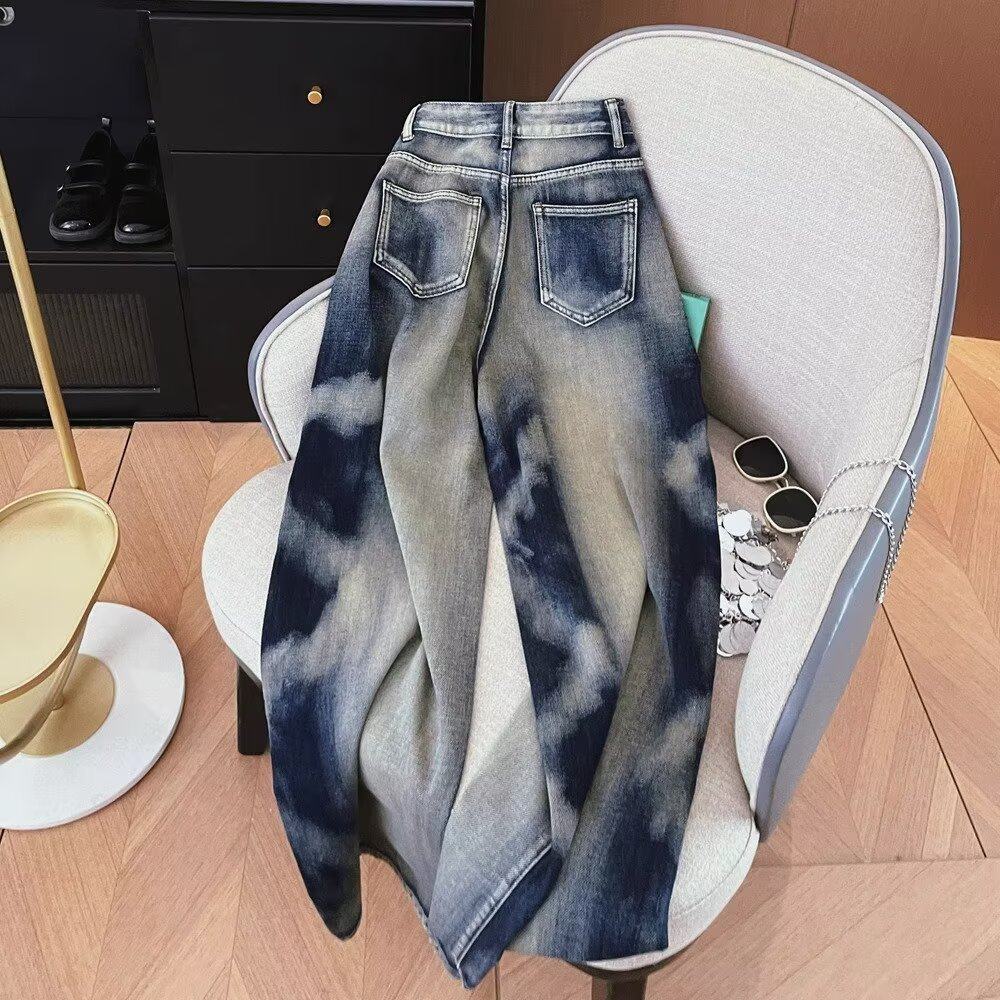 📚 美式复古扎染牛仔裤男春秋季高街潮牌直筒宽松休闲裤子阔腿老爹裤