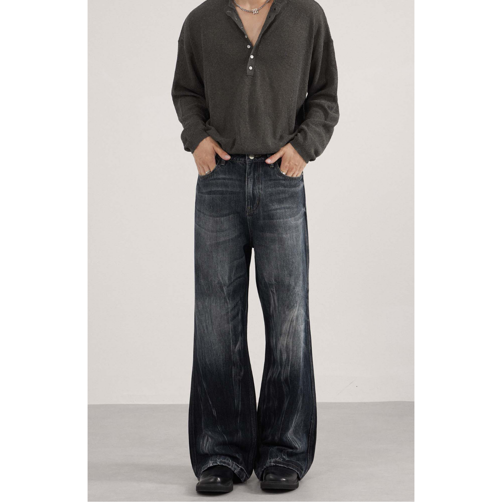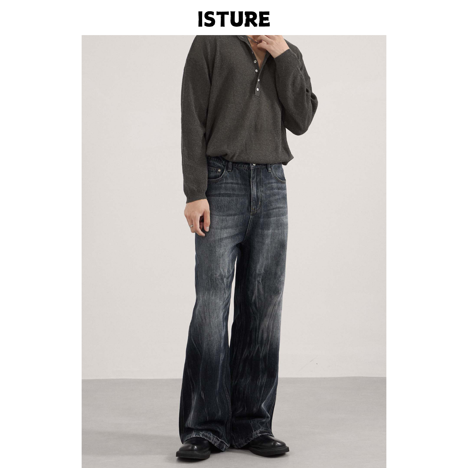 📚 ISTURE 美式复古vintage水洗扎染微喇牛仔裤男女宽松休闲阔腿长裤