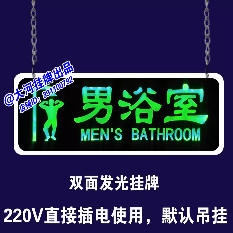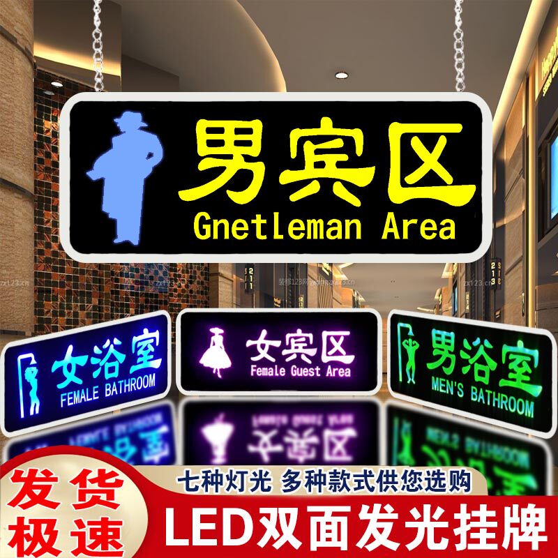 📚 男宾部标示牌发光女宾区指示提示吊挂牌桑拿汗蒸足疗店水疗双面牌