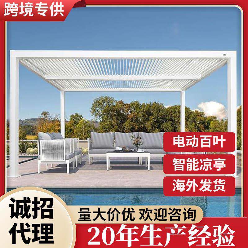 📚 现代户外凉棚电动百叶翻转凉亭超大露台花园庭院可调节屋顶阳光房