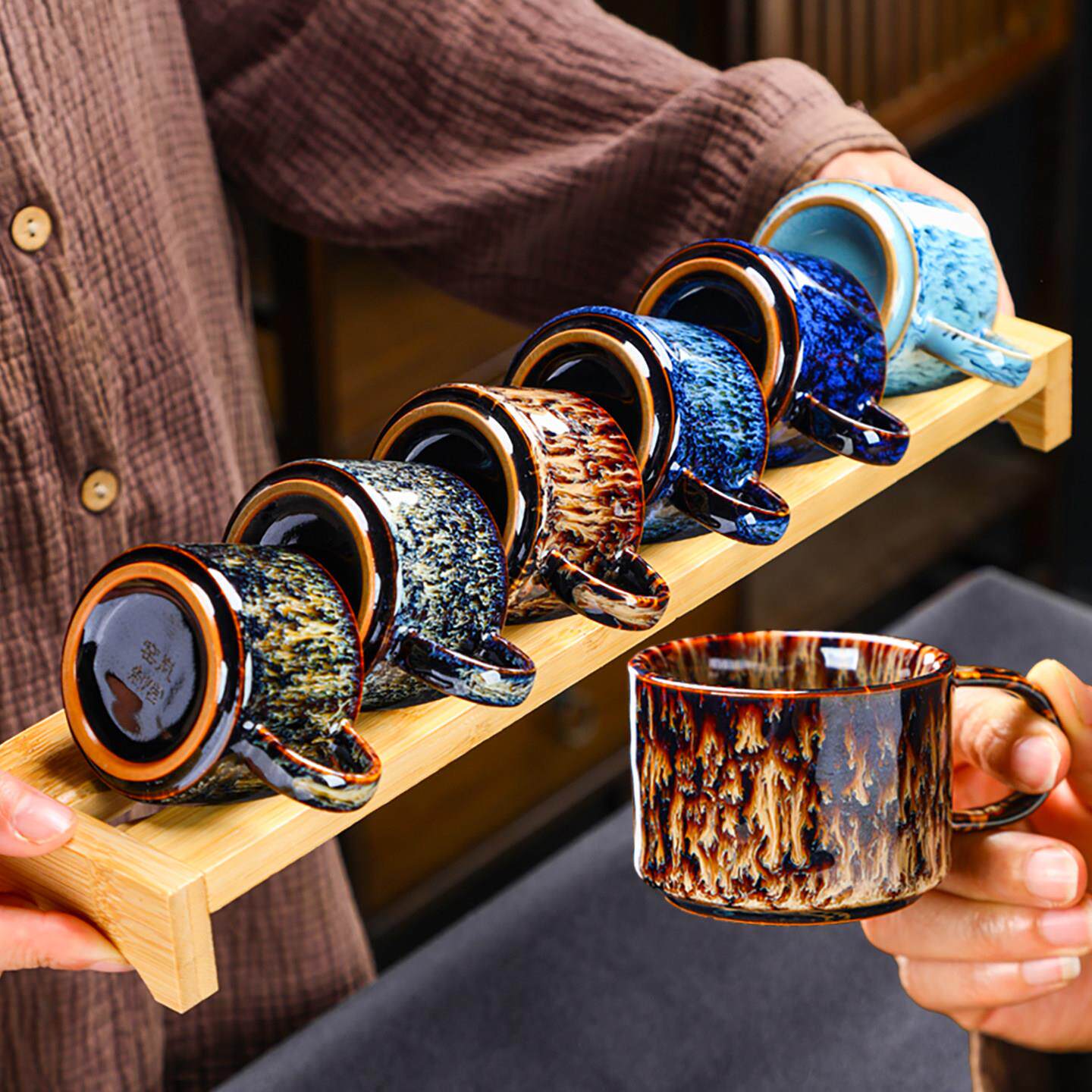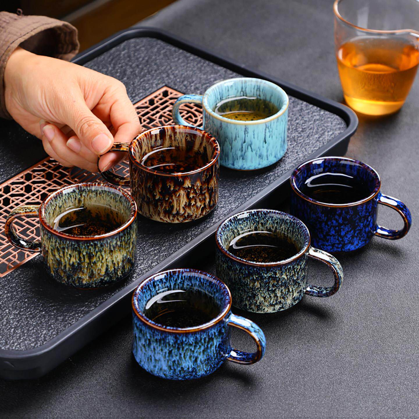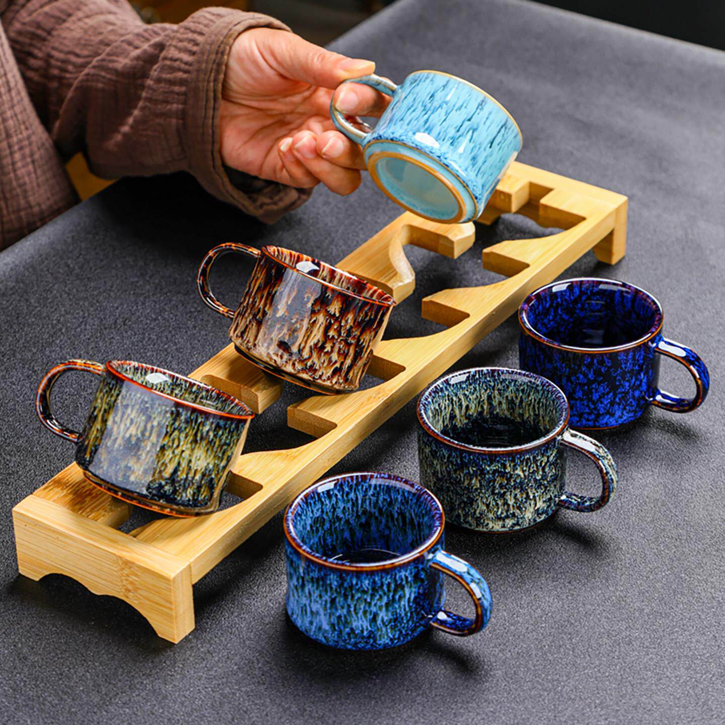 📚 岚宫窑 防烫带手把功夫茶小茶杯6祇套装家用茶具喝茶杯子陶瓷有耳