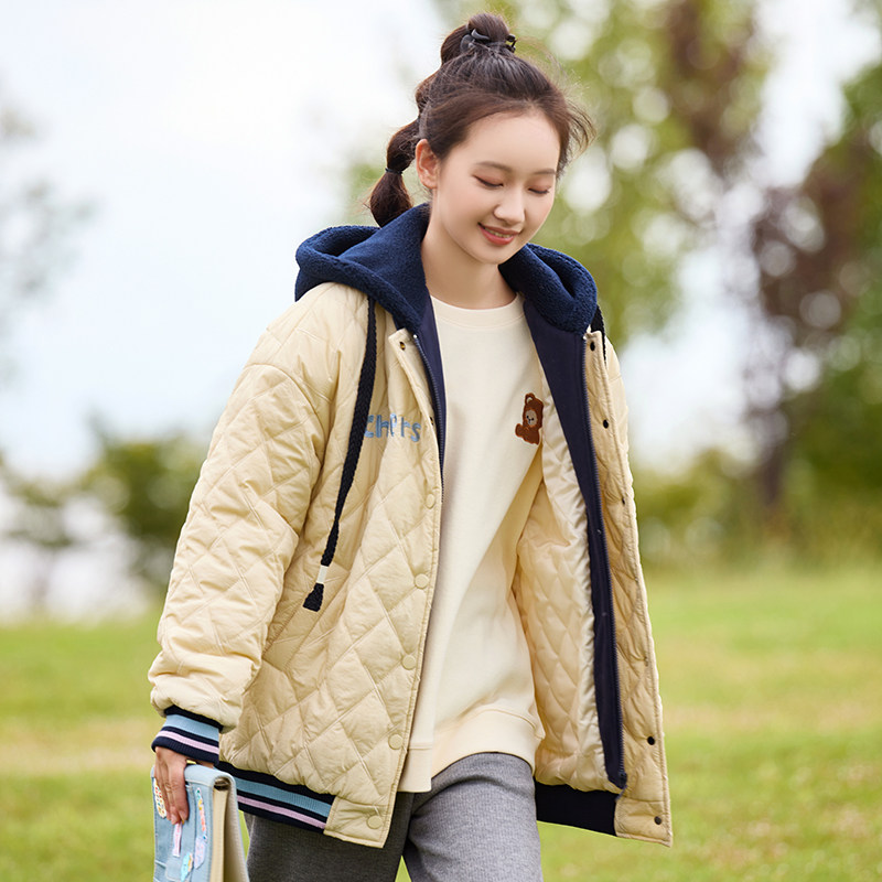 📚 初中学生棉衣外套短款加厚休闲少女冬装新款高中生假两件棉服棉袄