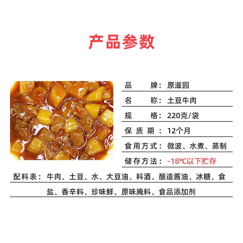 📚 原滋园系列 冷冻料理包土豆牛肉220g10袋微辣网咖小碗菜外卖便当
