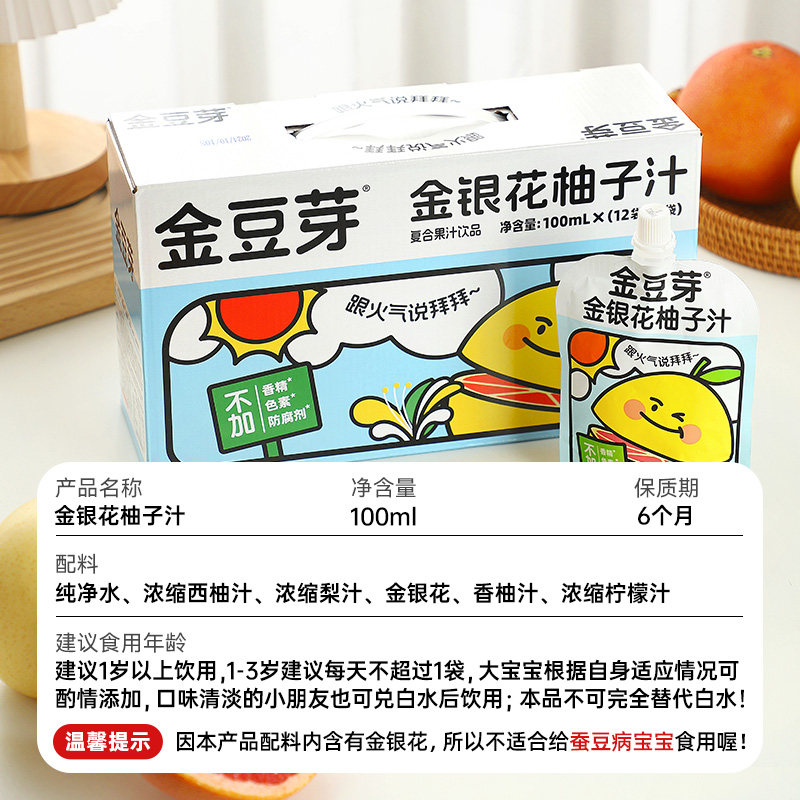 📚 金豆芽金银花柚子汁清润饮品儿童便携清火饮料送礼礼盒装官方过年