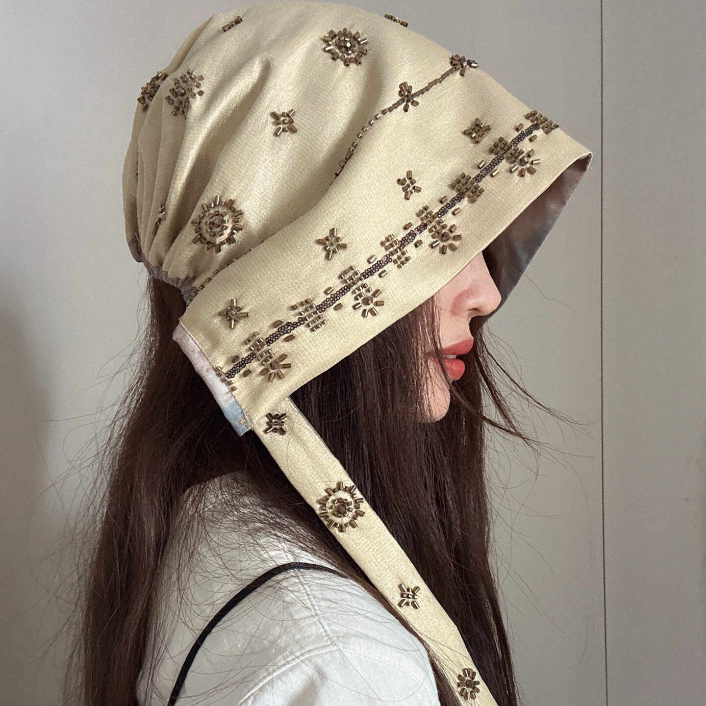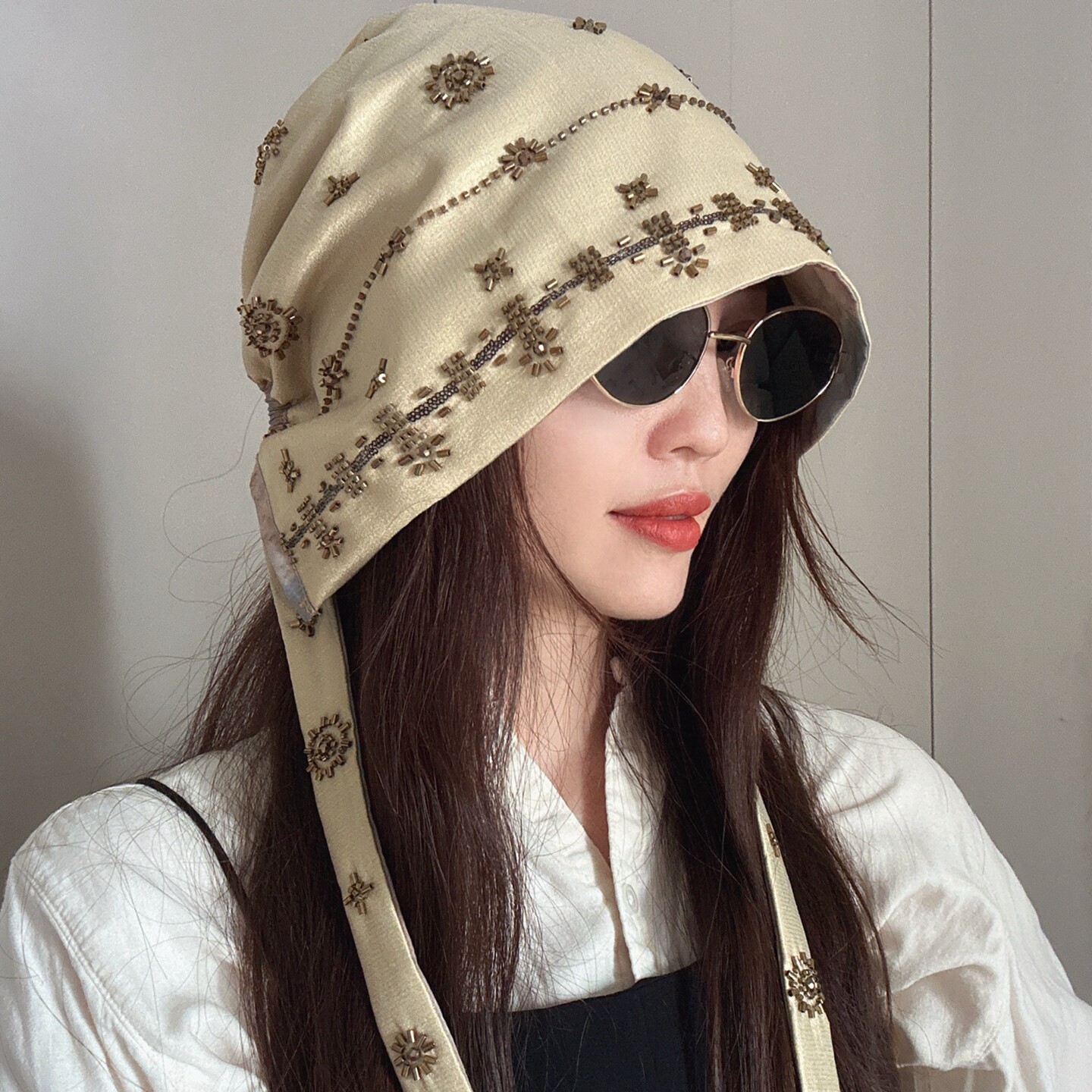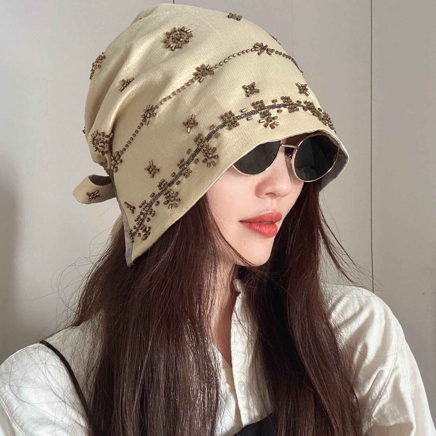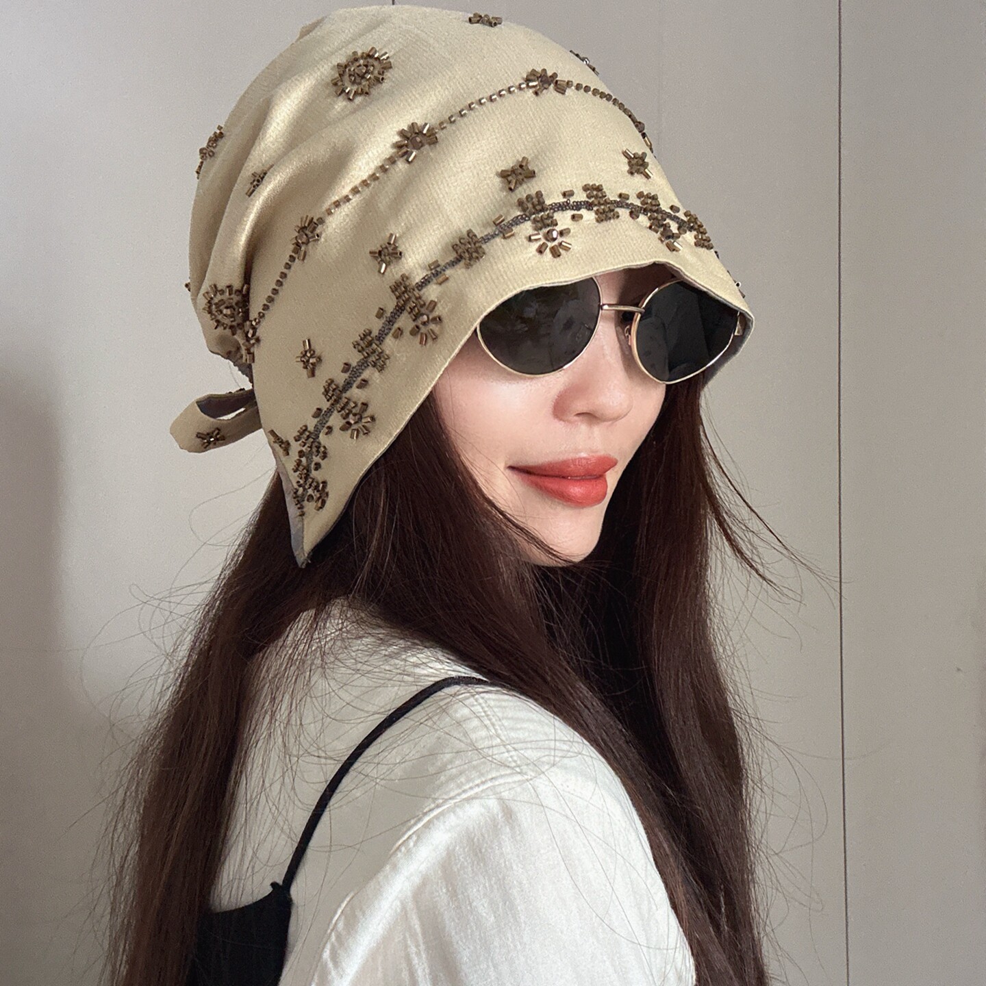 📚 原创设计师款!纯手工钉珠六芒星包头帽堆堆帽双面戴头巾帽子女秋