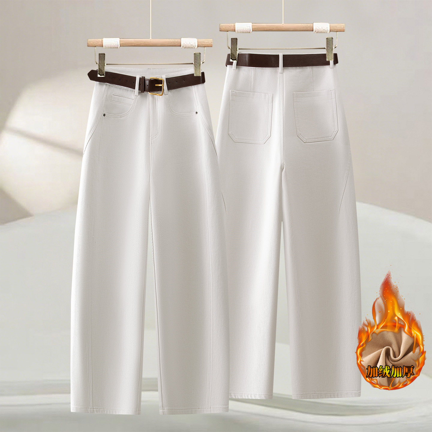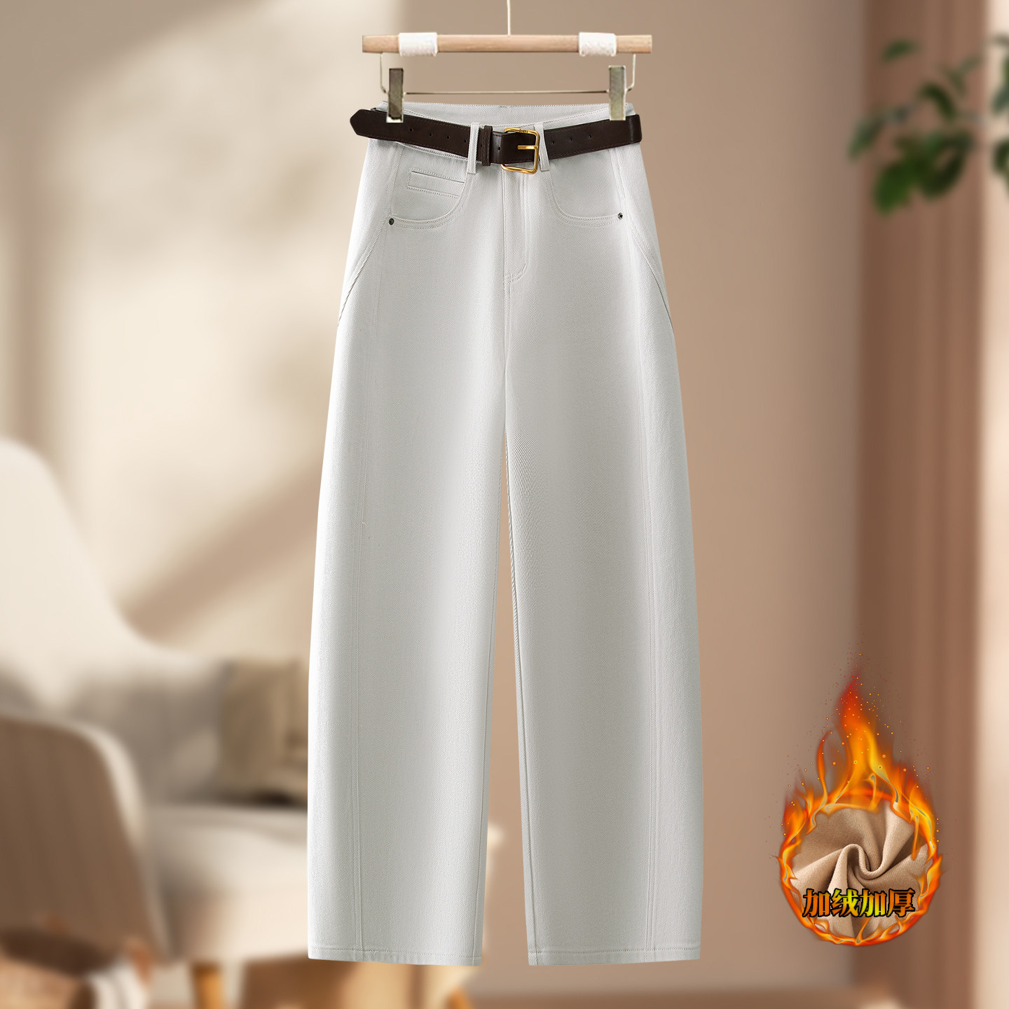 💥冬季新宠!🔥2025年爆款植绒石灰白弯刀牛仔裤🔥