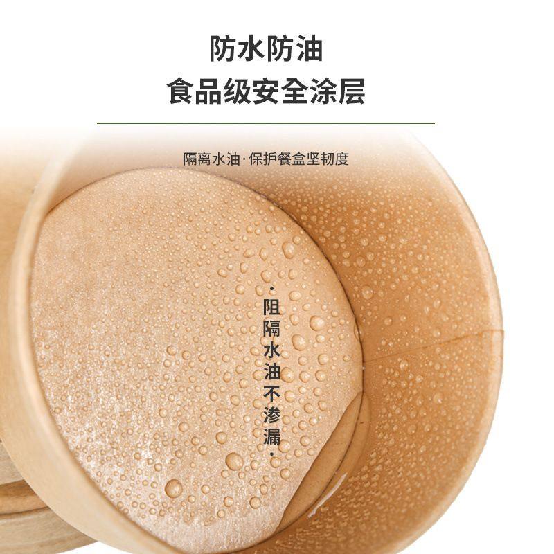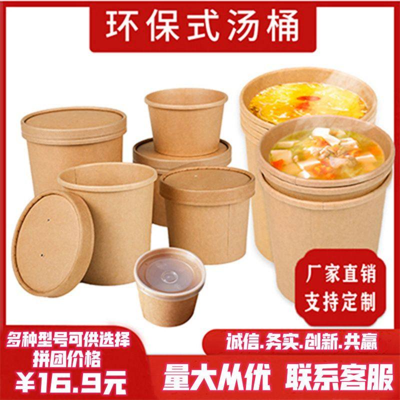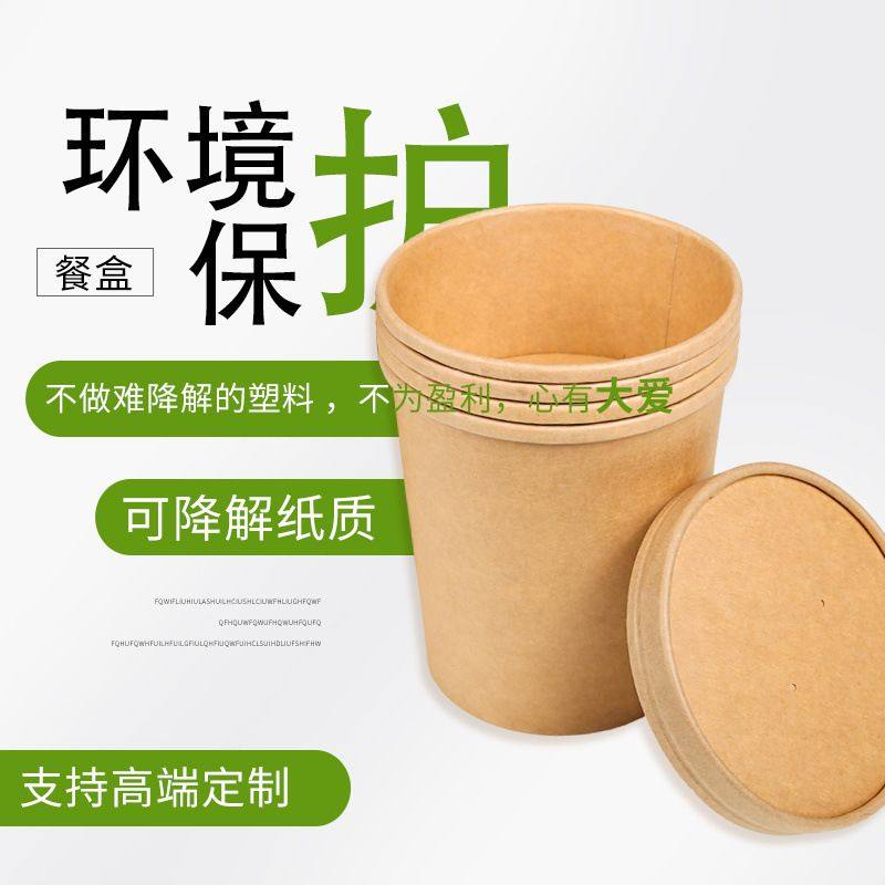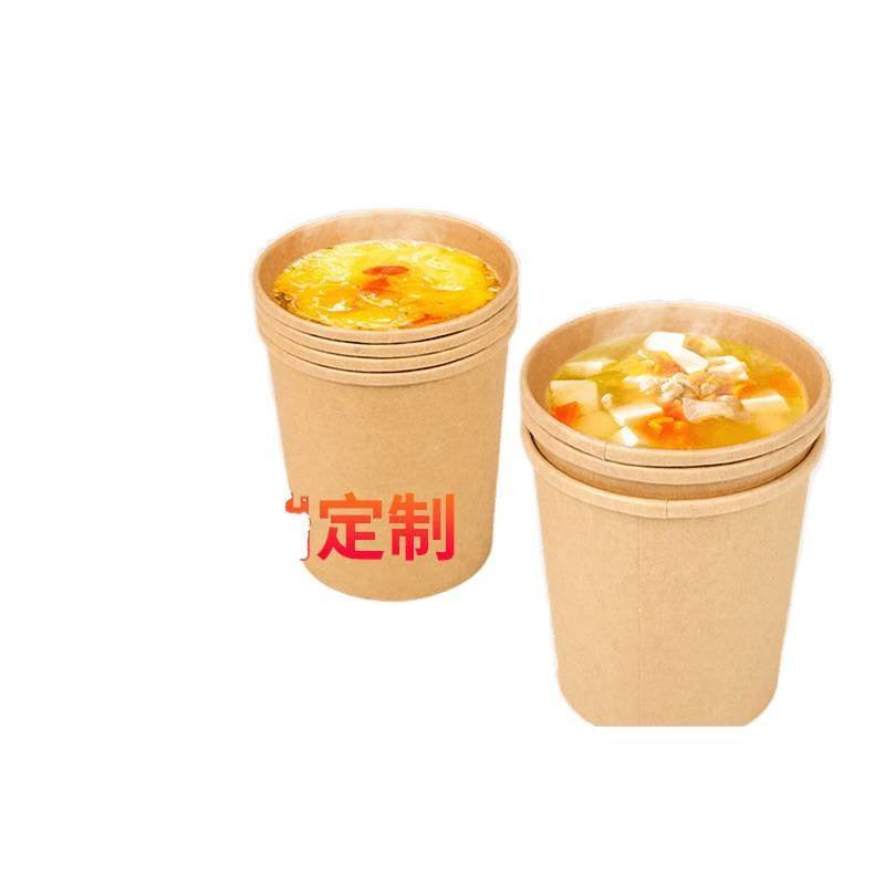 📚 纸杯牛皮纸汤桶一次性汤杯带盖纸碗圆形环保粥杯外卖快餐汤盒粥碗