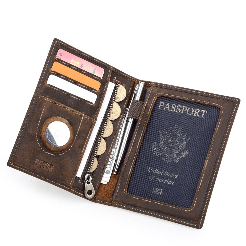 📚 复古疯马皮RFID防盗刷证件包airtag位家庭情侣旅行护照包