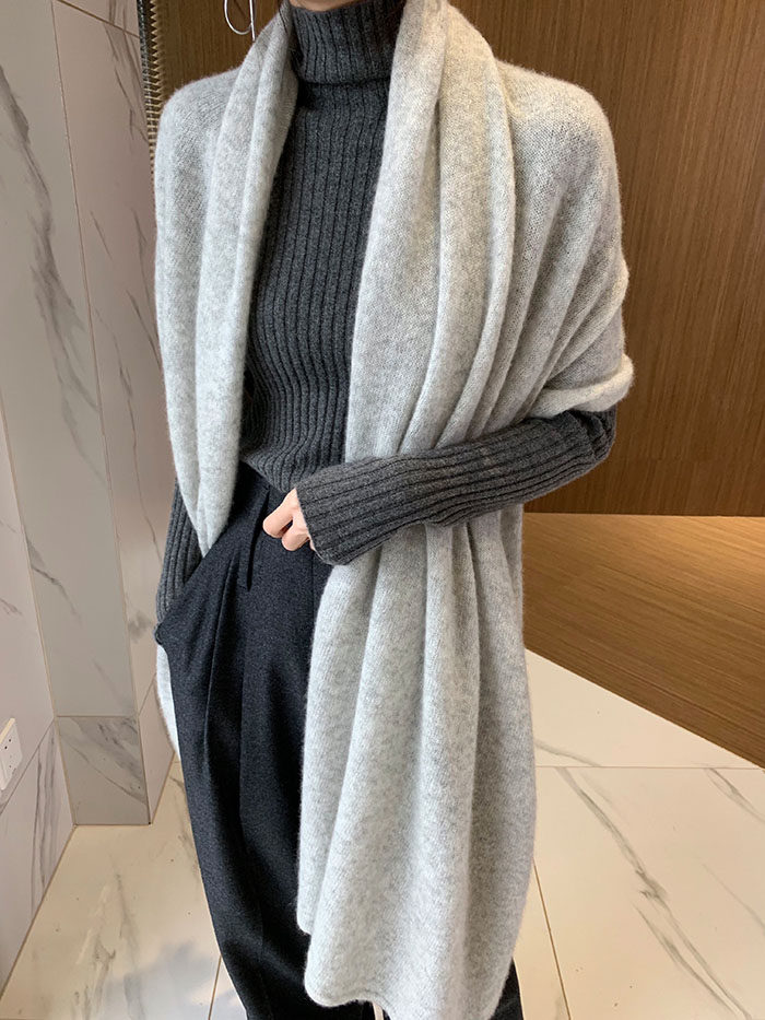 📚 一条经典的羊绒围巾 如云朵般轻盈亲肤高端丝羊绒针织围巾大披肩