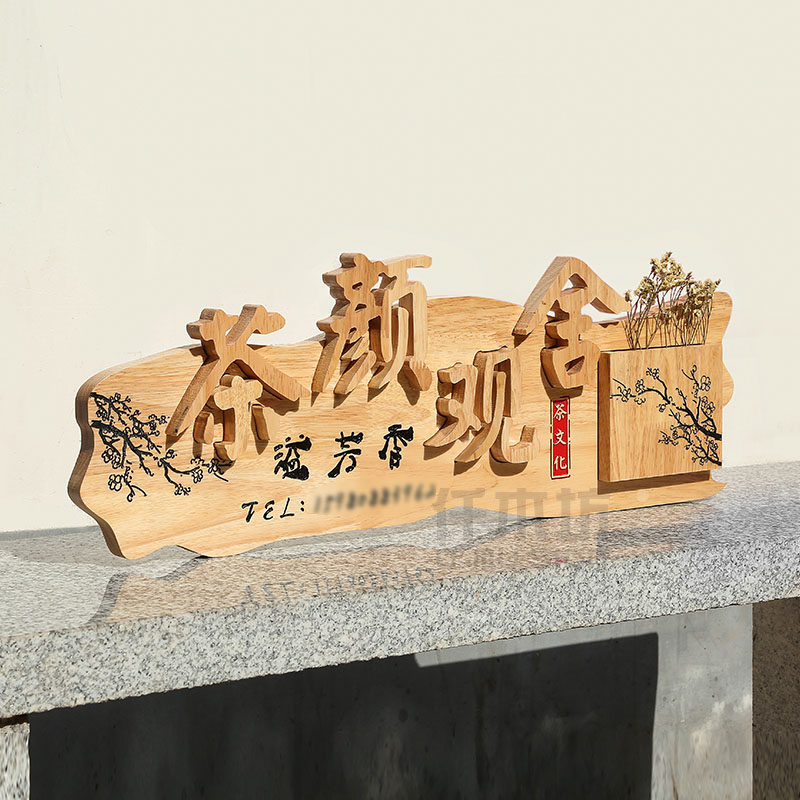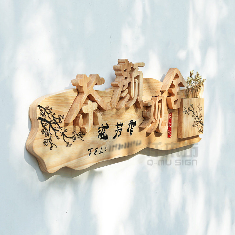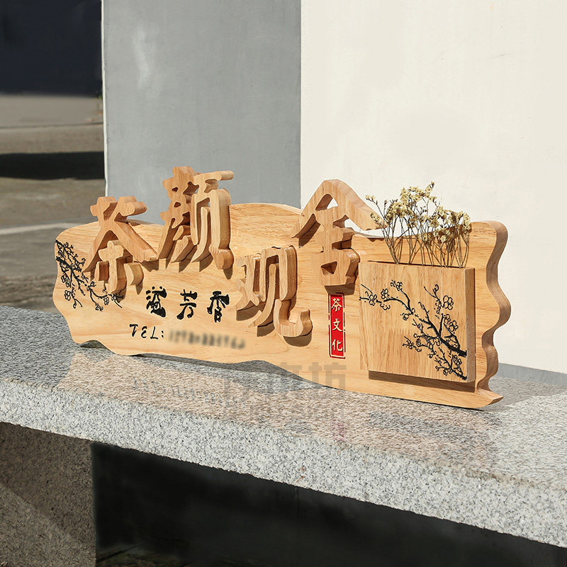 📚 古色古香实木招牌复古装饰logo挂牌茶铺咖啡厅驿站木质牌匾定制做