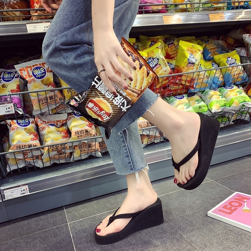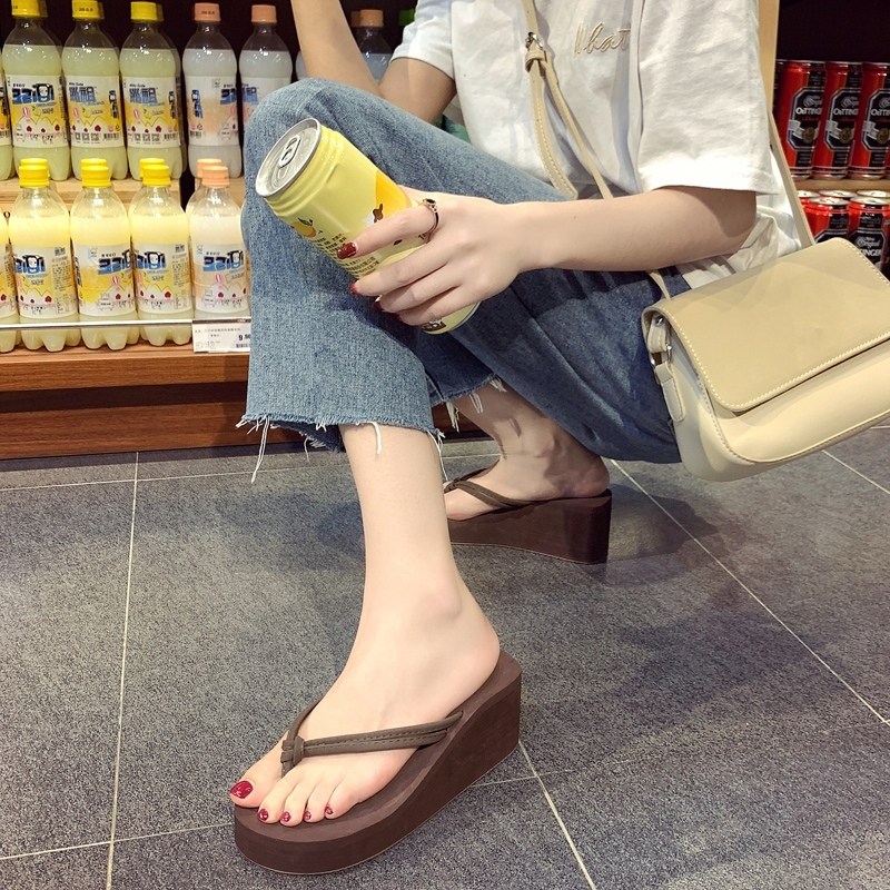 📚 厚底人字拖鞋女夏外穿度假沙滩鞋防滑增高坡跟夹脚夹板高跟凉拖鞋