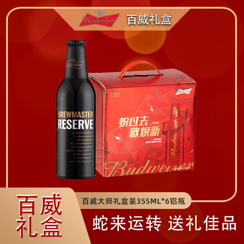 📚 国产百威Budweiser啤酒百威/百威大师铝罐355ml*24瓶精酿礼盒装