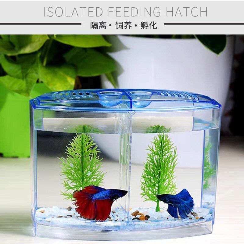 📚 鱼缸斗鱼缸双缸小型鱼分离盒带隔板一整套观赏鱼缸饲养繁殖孵化缸