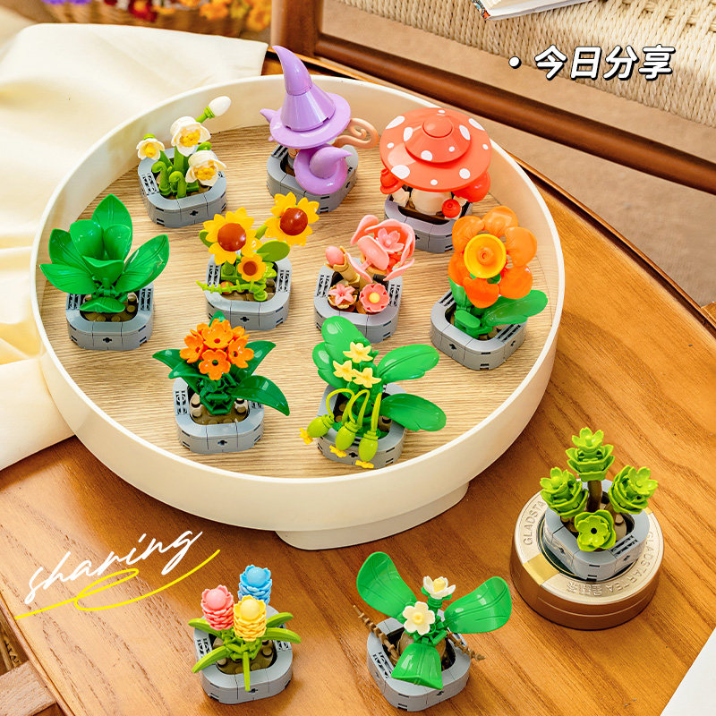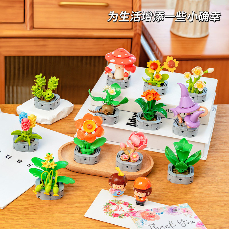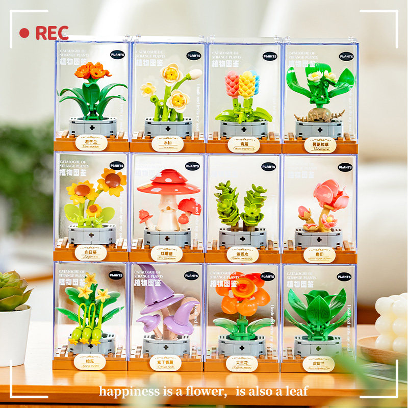 📚 费米小颗粒积木花束植物图鉴永生花送女友手办桌面摆件拼装玩具男