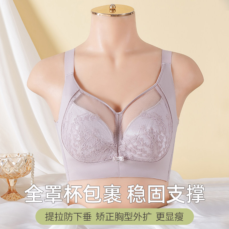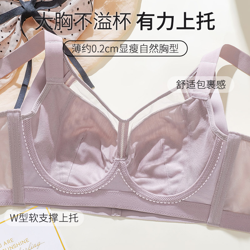📚 全罩杯软钢圈大胸显小调整型内衣女超薄款防下垂收副乳聚拢文胸罩