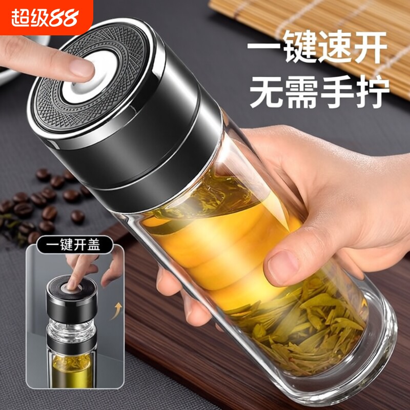 📚 一键开盖车载玻璃杯男士保温水杯茶杯速茶水分离杯单层双层旋转