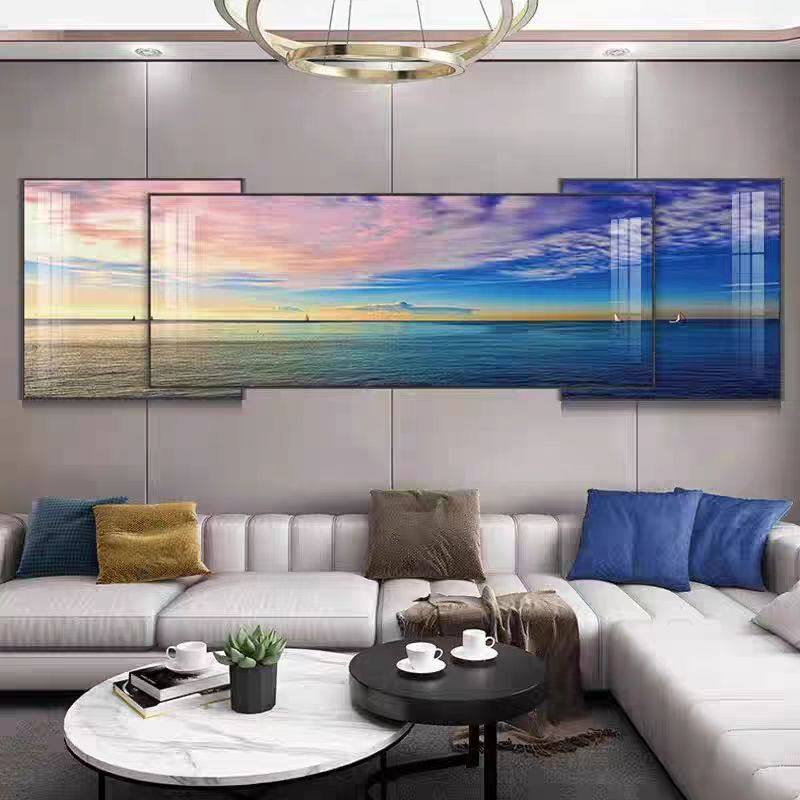 📚 客厅高级感叠加装饰画大气风景三联现代简约沙发背景墙挂画晶瓷画