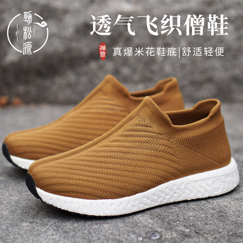 📚 劲松源僧鞋和尚出家人禅修一脚蹬居士鞋男款飞织爆米花软底女春秋