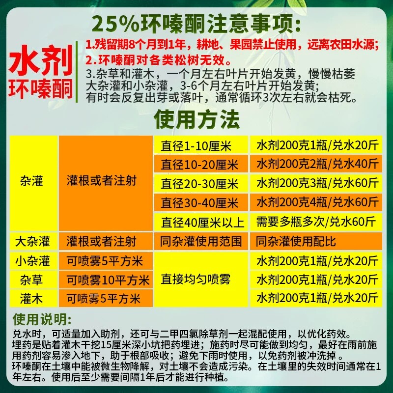 📚 环嗪酮环嗪哃除灌木环嗪臻磺酮铜除草灭草水剂药粉颗粒农药正品