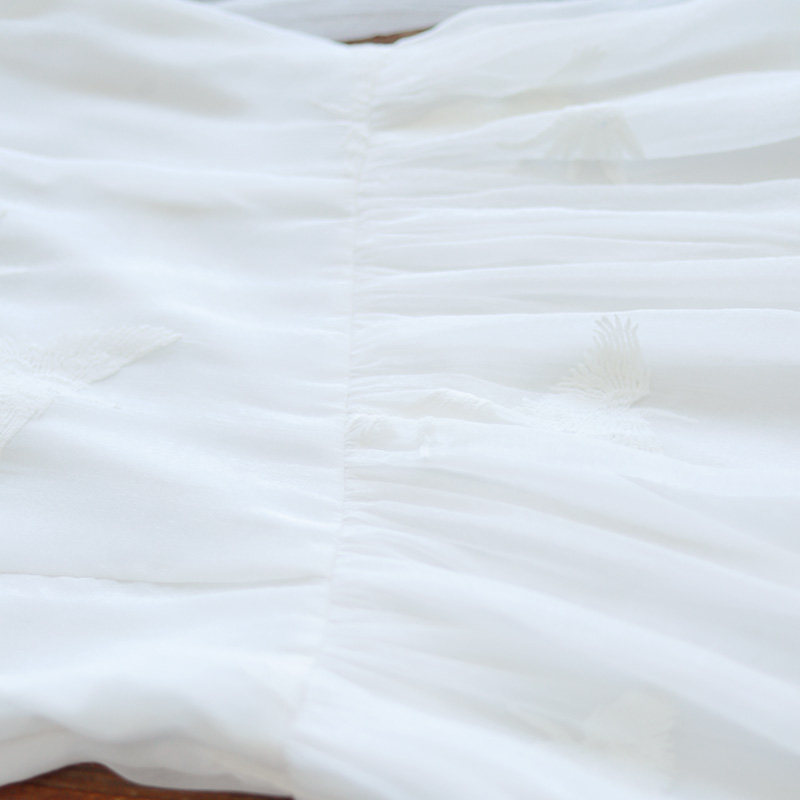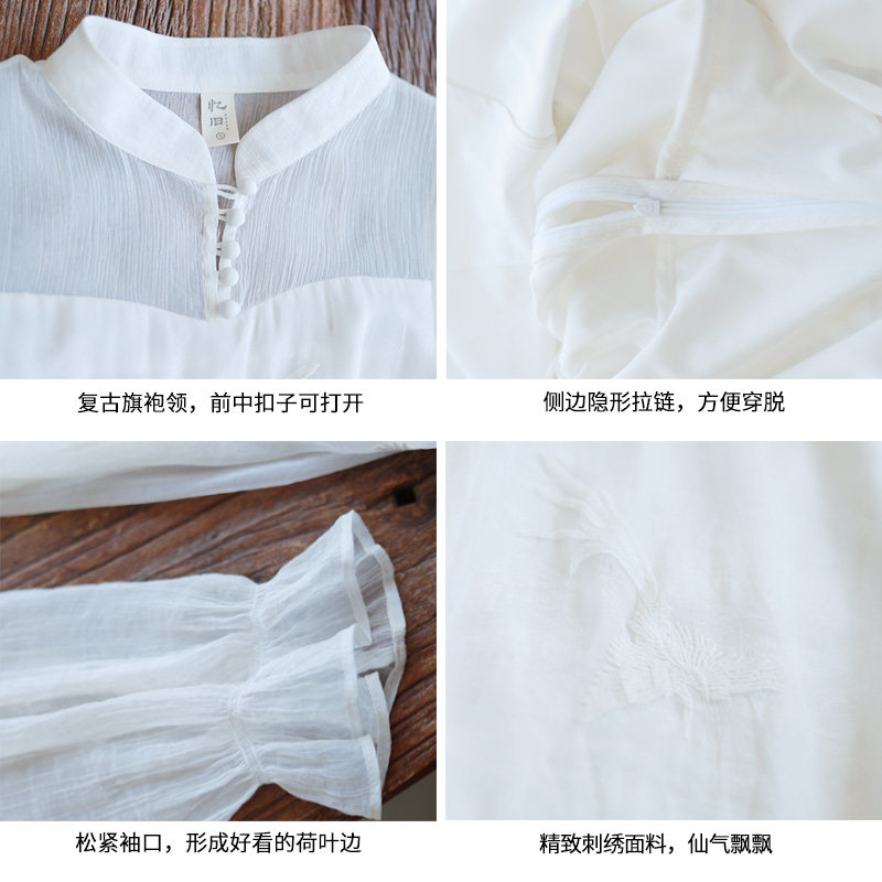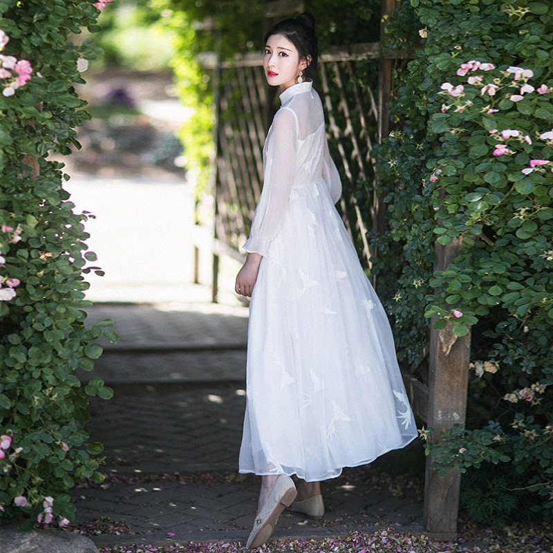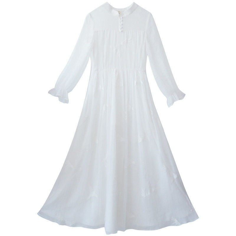 📚 【199元区】高腰连衣裙女夏季刺绣长裙设计感荷叶袖气质白色裙子
