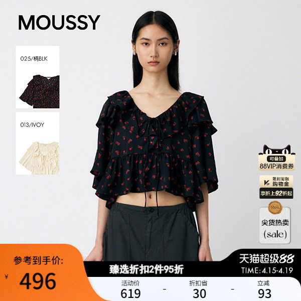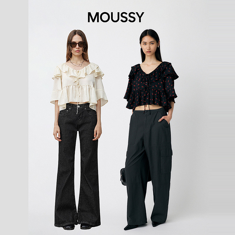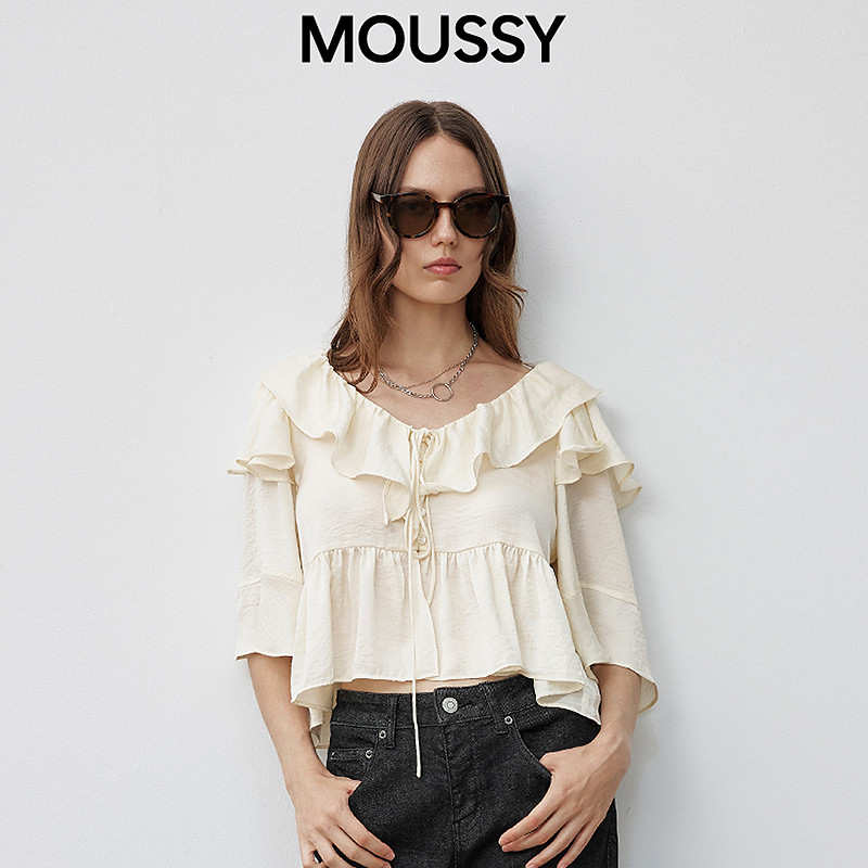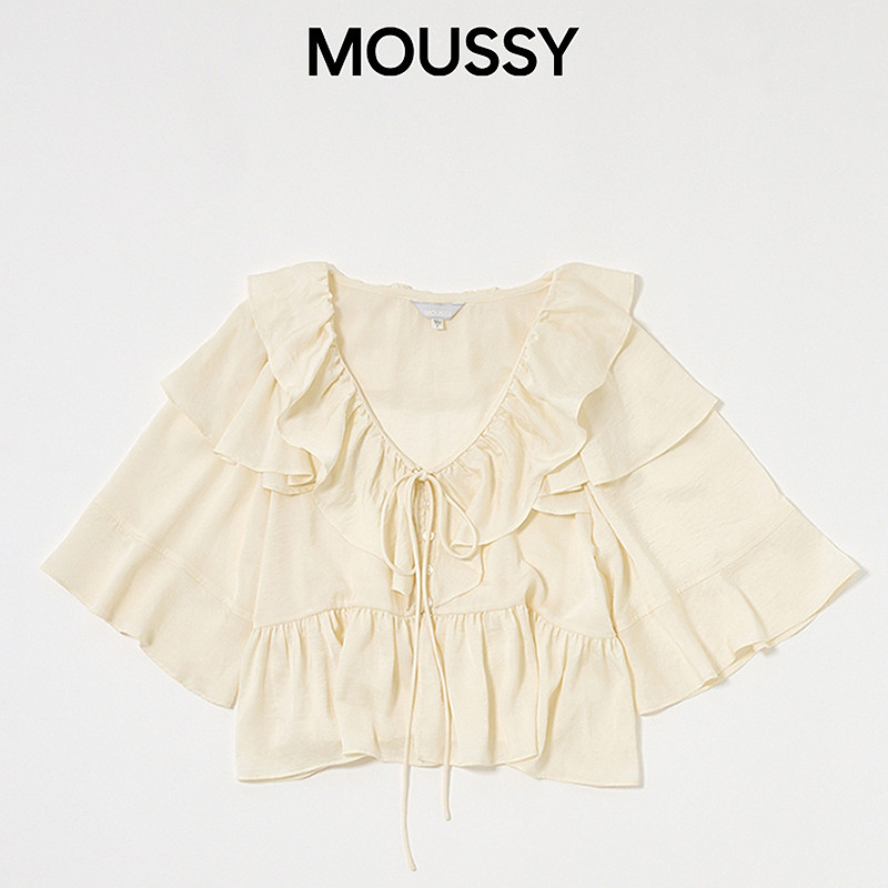 📚 任敏同款 MOUSSY 早春新品甜美风绑带荷叶边衬衫010IA230-4231