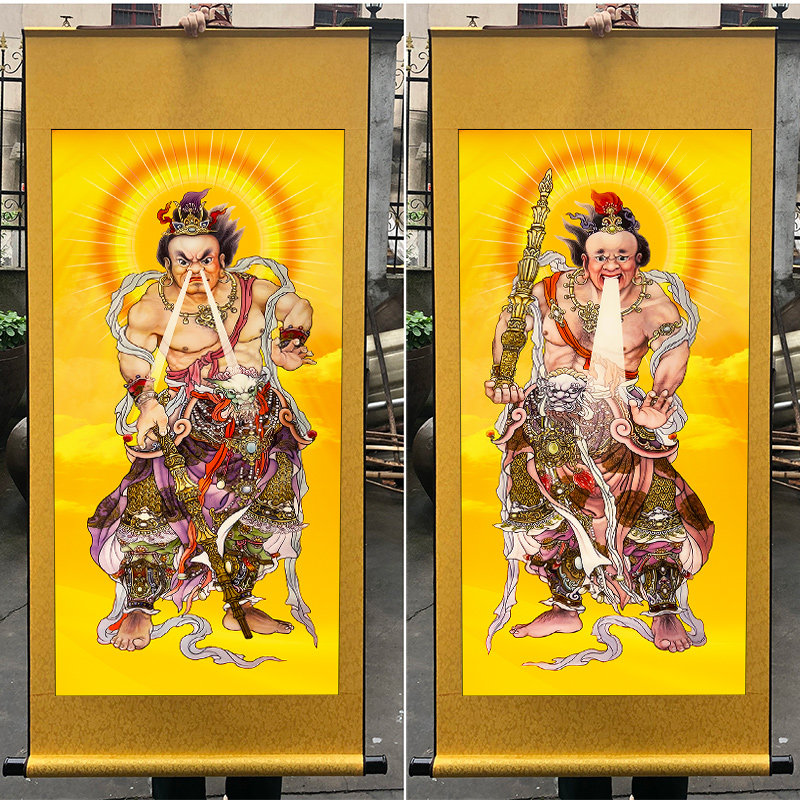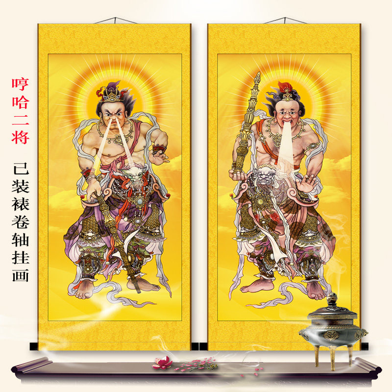 📚 门神哼哈二将挂画神将玄关客厅装饰品护法丝绸卷轴画乔迁新居礼品