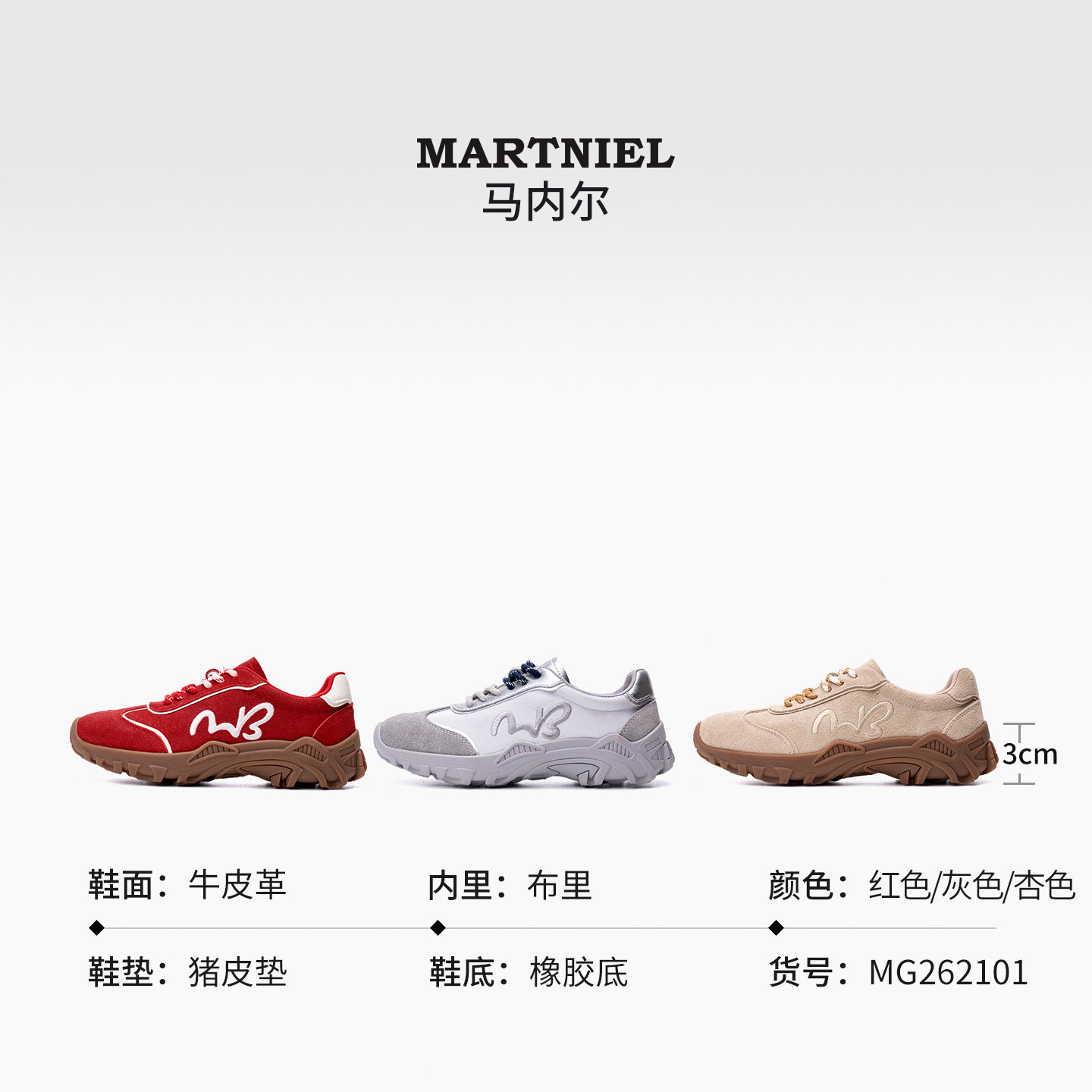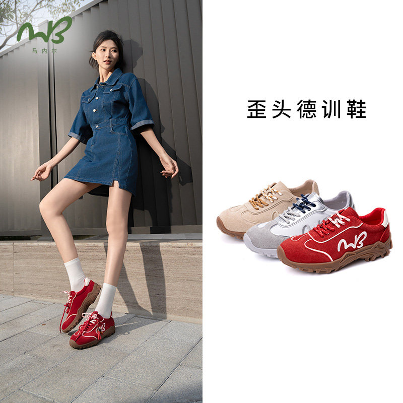 📚 马内尔歪头鞋红色德训鞋女2026春新款厚底增高百搭运动休闲阿甘鞋