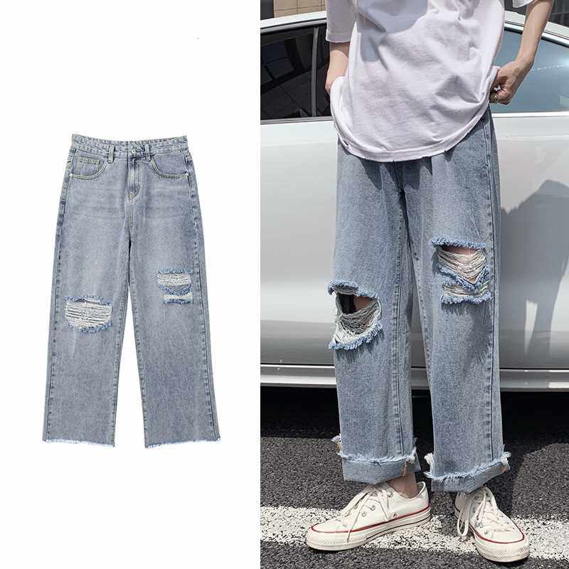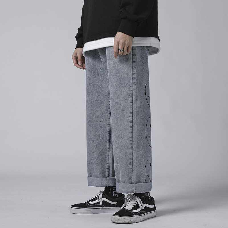 📚 Fashion Mens Vintage Washed Jeans Hip Hop Smile Face Printed