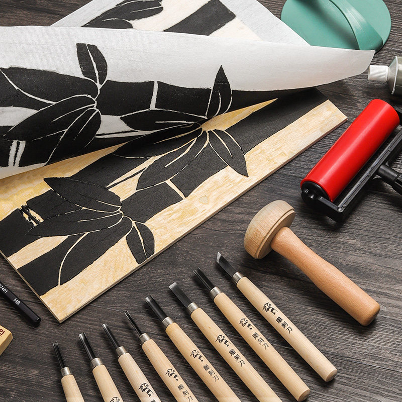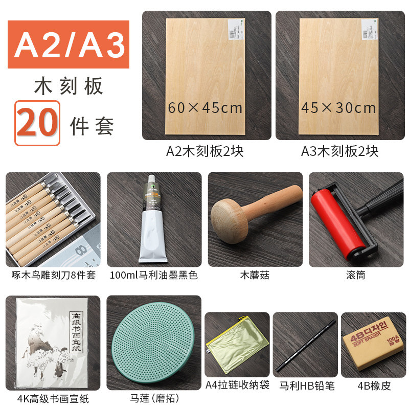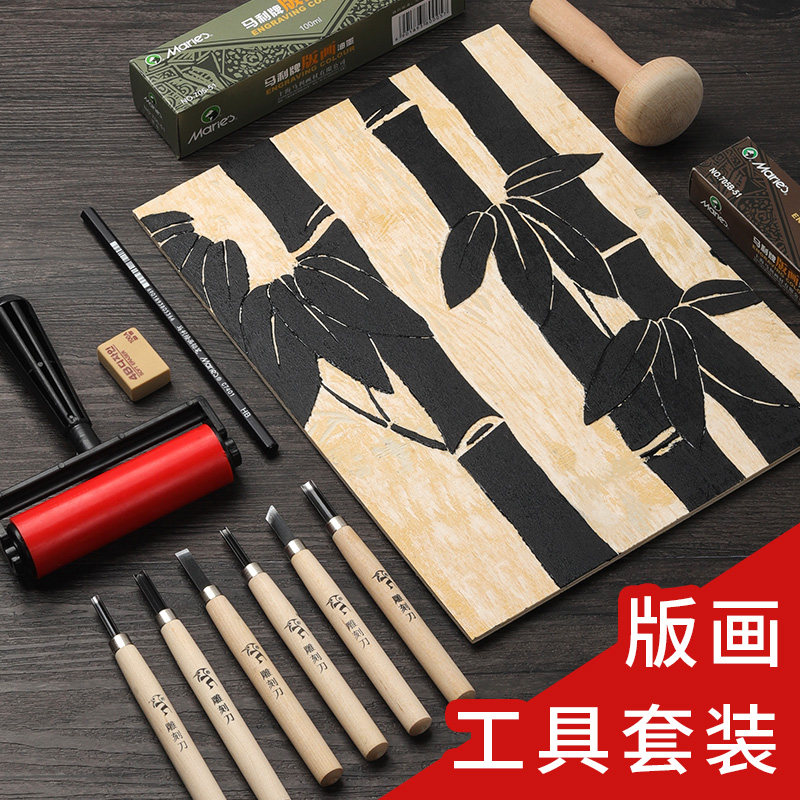 📚 版画工具套装木刻板雕刻材料木板画马利牌黑色版画油墨胶板初学者专用刻刀滚筒木蘑菇马莲学生儿童美术吹塑板