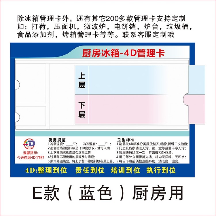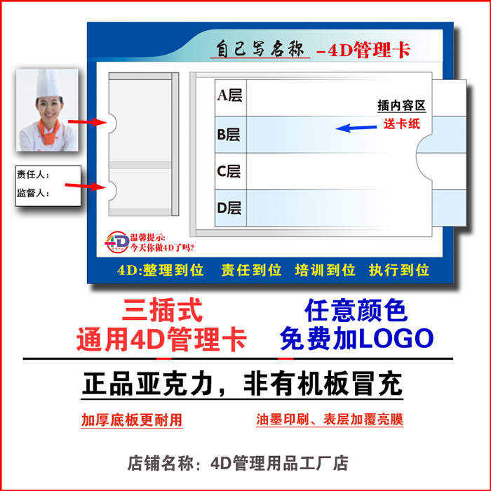 📚 亚克力4D厨房冰箱 4d管理卡餐饮学校食堂酒店前厅责任卡 中成伟业