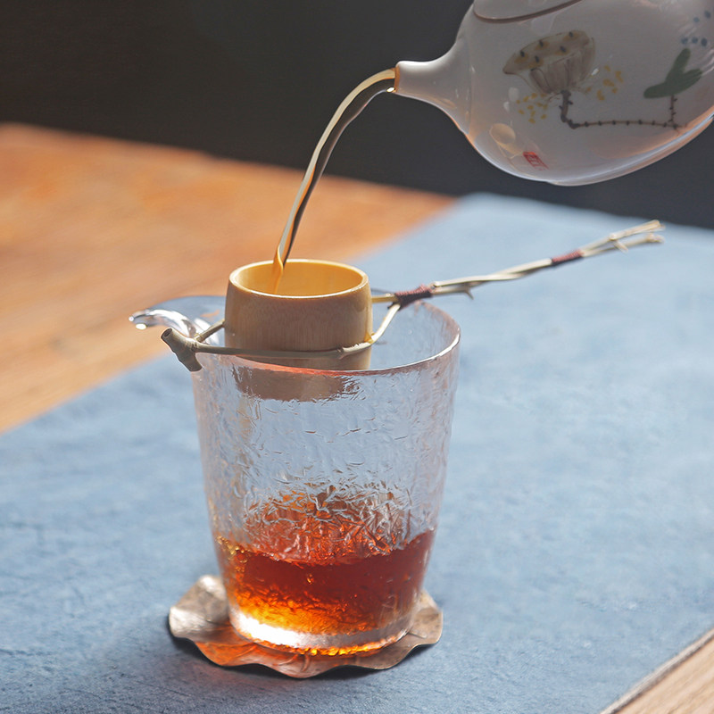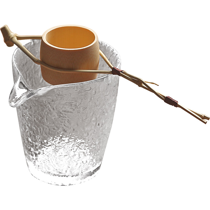 📚 竹茶滤玻璃公道杯组合 功夫茶具茶漏分茶公杯套装 锤目纹耐热茶海