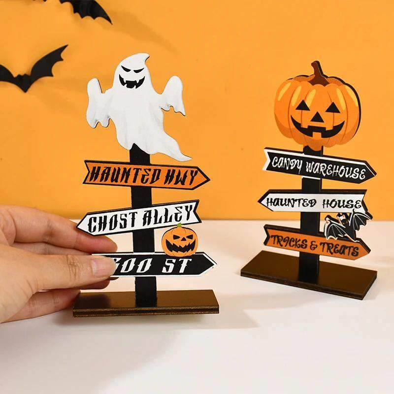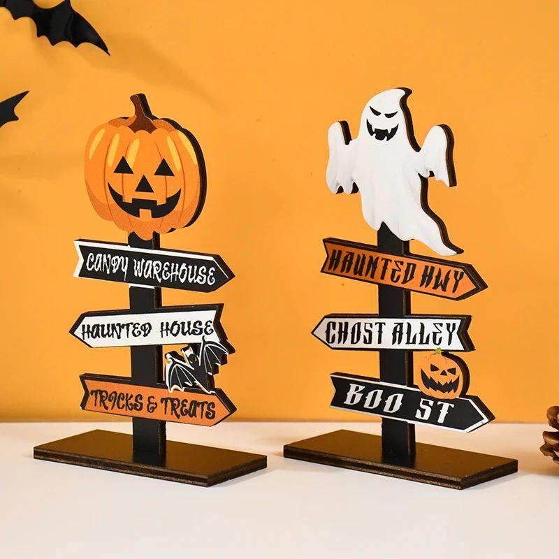 📚 Halloween Pumpkin Ghost Wooden Table Ornament Craft Hallowee