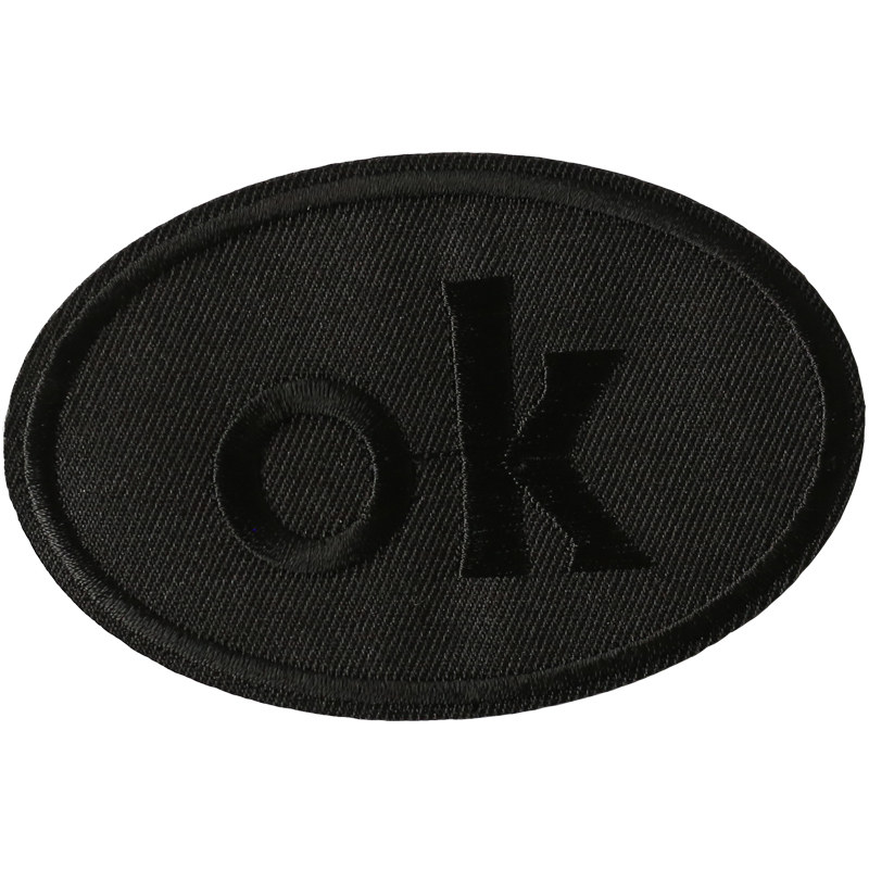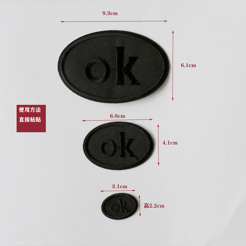 📚 免缝自粘纯黑色椭圆长条带字母刺绣布贴衣服羽绒服修补破洞无痕贴