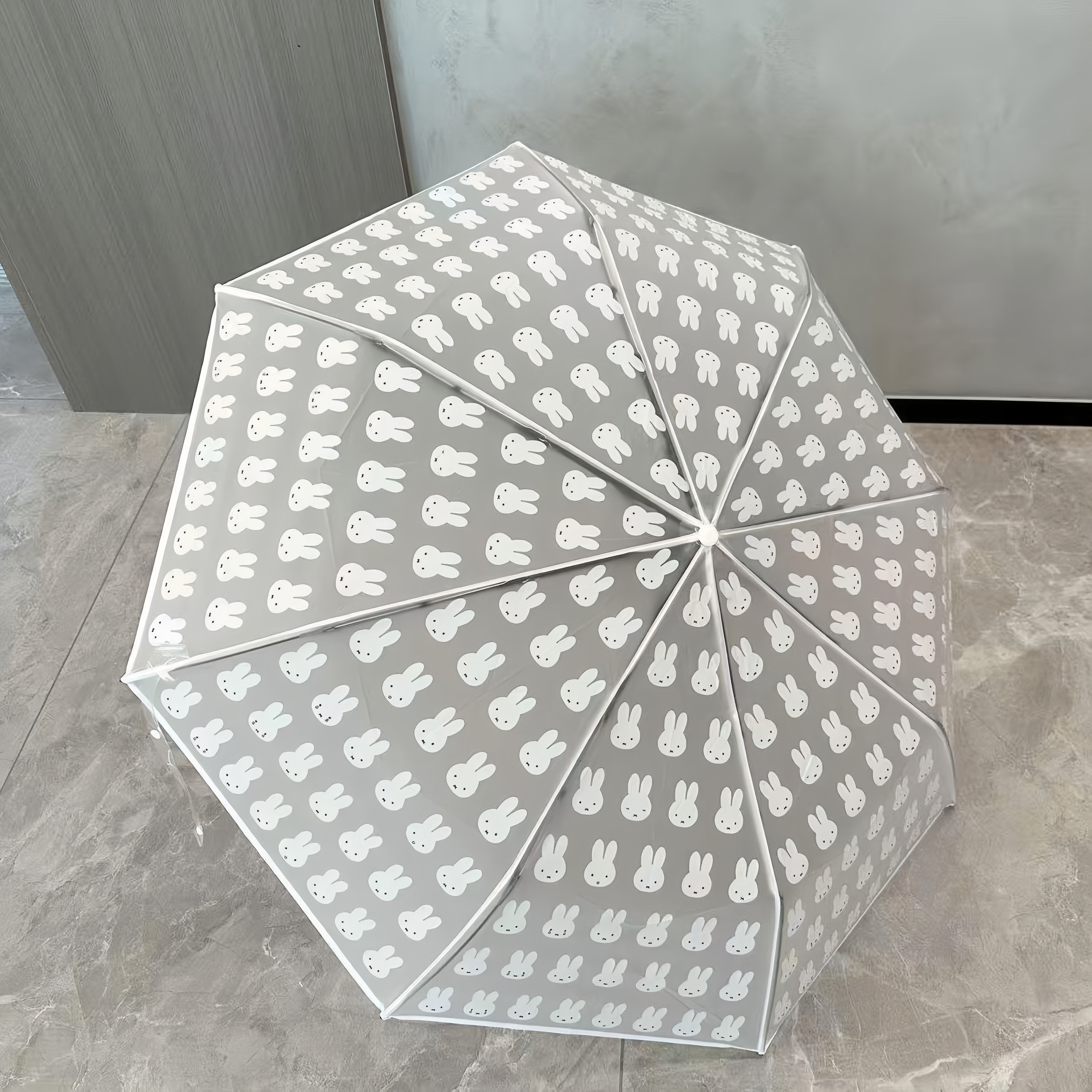 📚 ins风可爱卡通小兔原单磨砂透明全自动晴雨伞可爱头雨伞简约清新