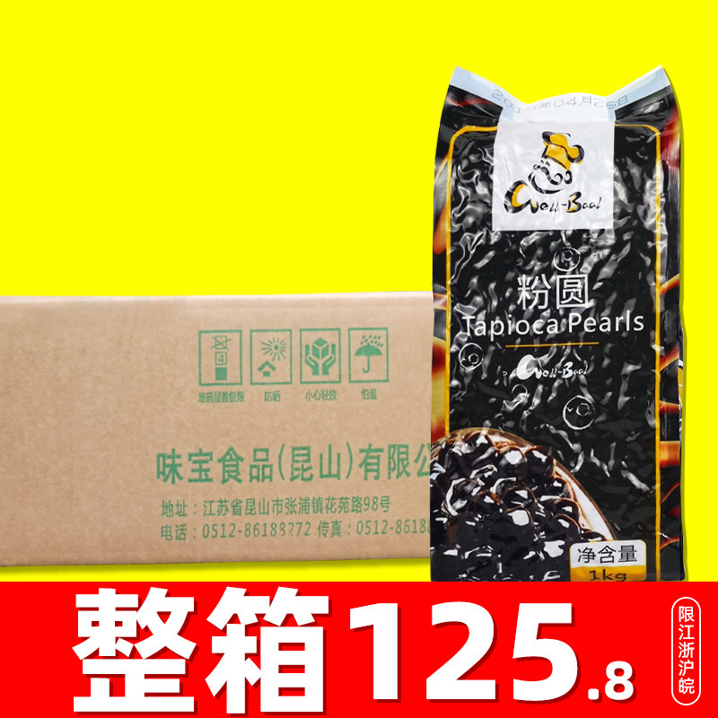 📚 味宝珍珠黑珍珠奶茶店专用商用黑糖粉圆珍珠豆1kg0.8cm 整箱批 发