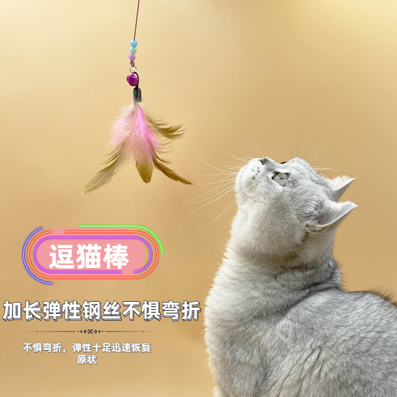 📚 猫玩具逗猫棒钢丝羽毛长杆带铃铛替换头猫咪钓鱼玩具宠物猫咪用品