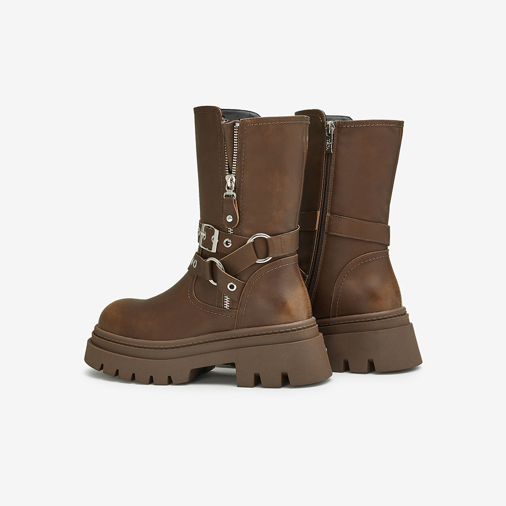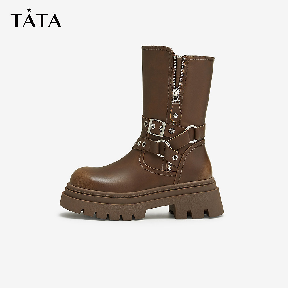 📚 TATA他她复古加绒时装冬季短靴马丁靴机车西部靴女鞋奥莱CDM01DS4