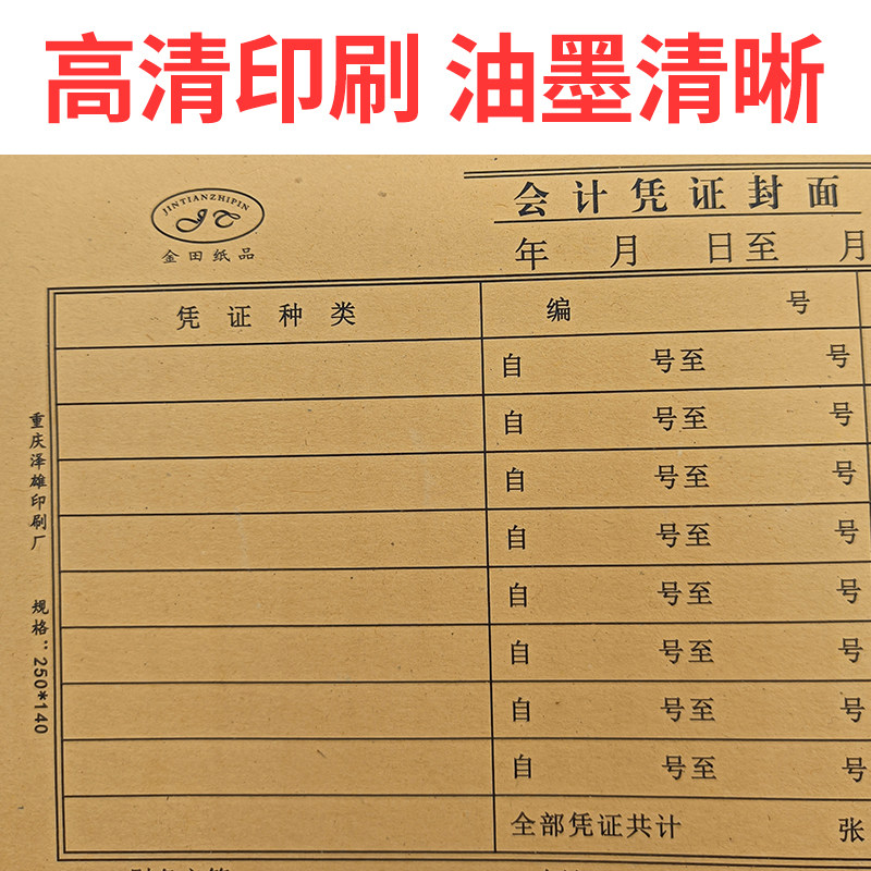 📚 金田会计凭证封面牛皮纸通用25*14cm征税扣税发票财务记帐登记表