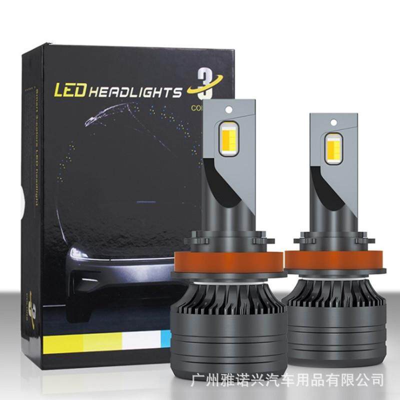 📚 新款K9三色双色温汽车LED大灯远近光灯高亮头灯变色雾灯泡H4H1H7