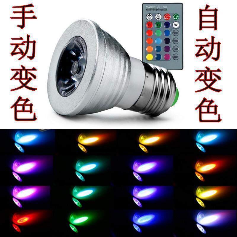 📚 LED射灯灯泡自动变色七彩3W闪光E27螺口220V遥控e14聚光可调光源