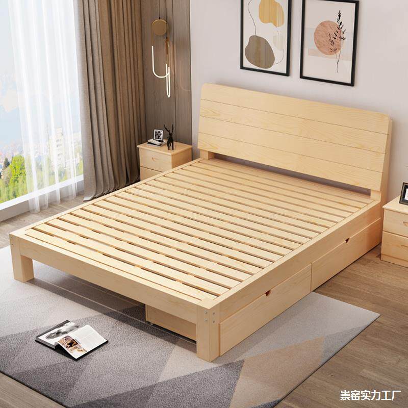 📚 一米宽人床家用双人实一862床米五的木硬床垫席梦单思床架松木1世