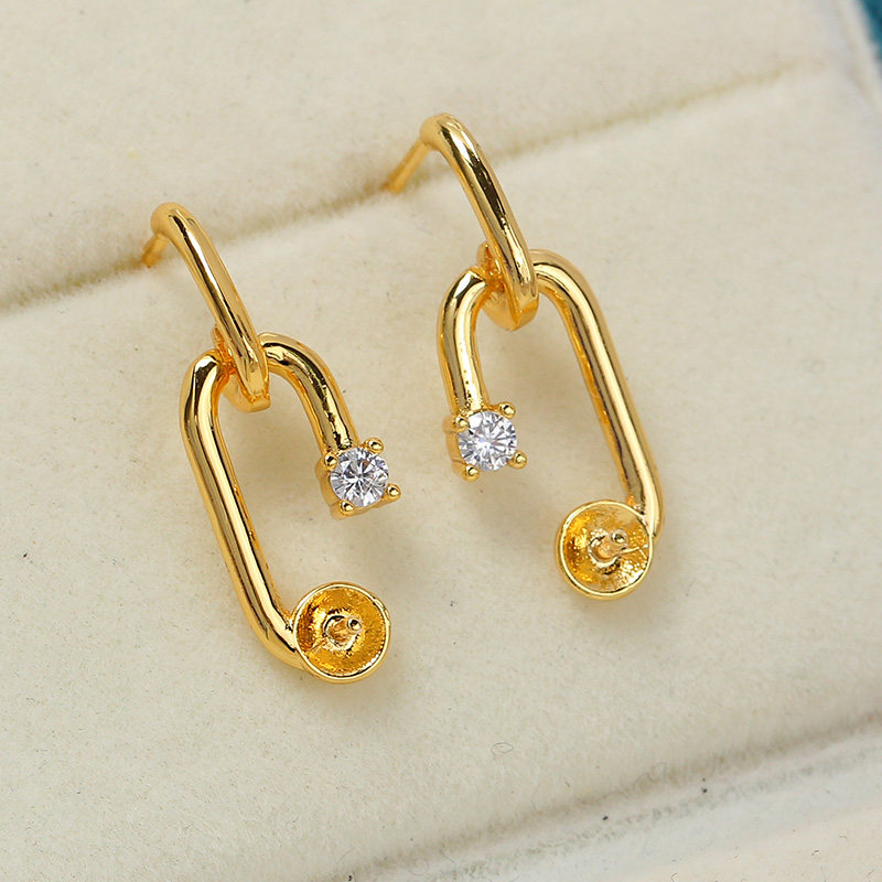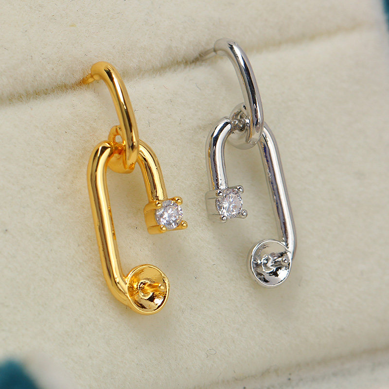 📚 国产14k包金 回形针锆石珍珠耳钉S925银针耳饰空托 DIY配件百搭女