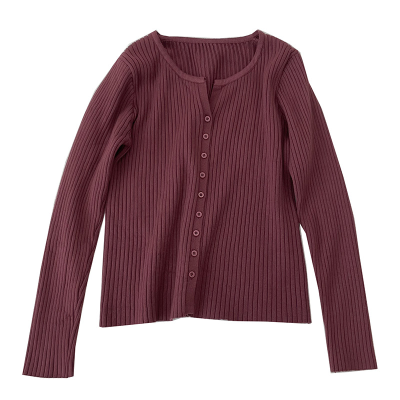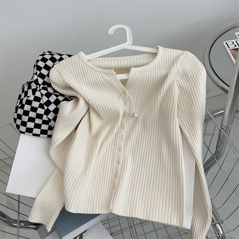 📚 显身材小V领针织衫!2022坑条修身显瘦小个子短款纽扣开衫上衣女